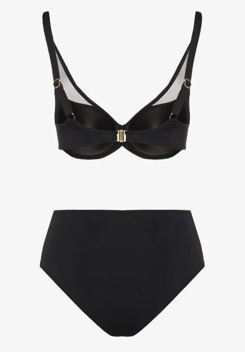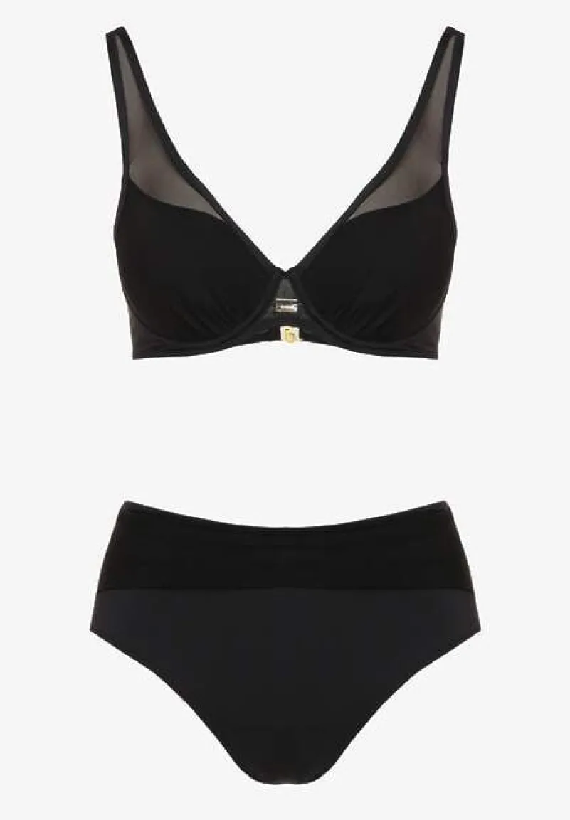 Czarne Bikini z Siateczkowymi Zdobieniami Biustonosz i Majtki Typu Figi Linelissa
