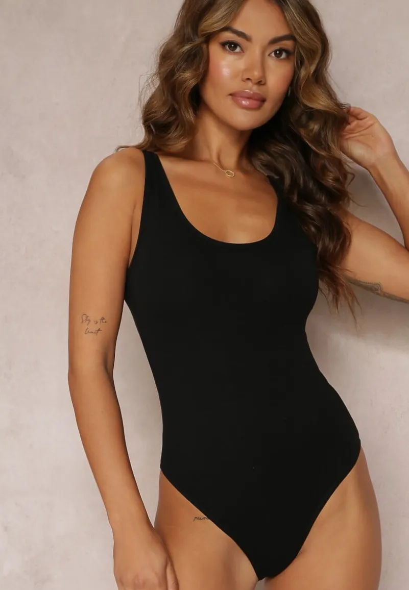 Body na grubszych ramiączkach wykonane z elastycznej bawełny. Zapinane na haftki.