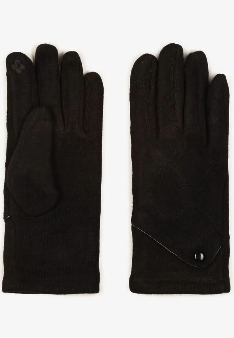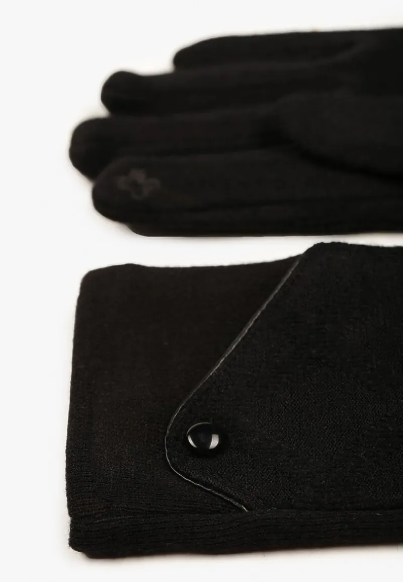 Czarne Dzianinowe Rękawiczki Eleganckie z Ozdobnym Guzikiem Senindra