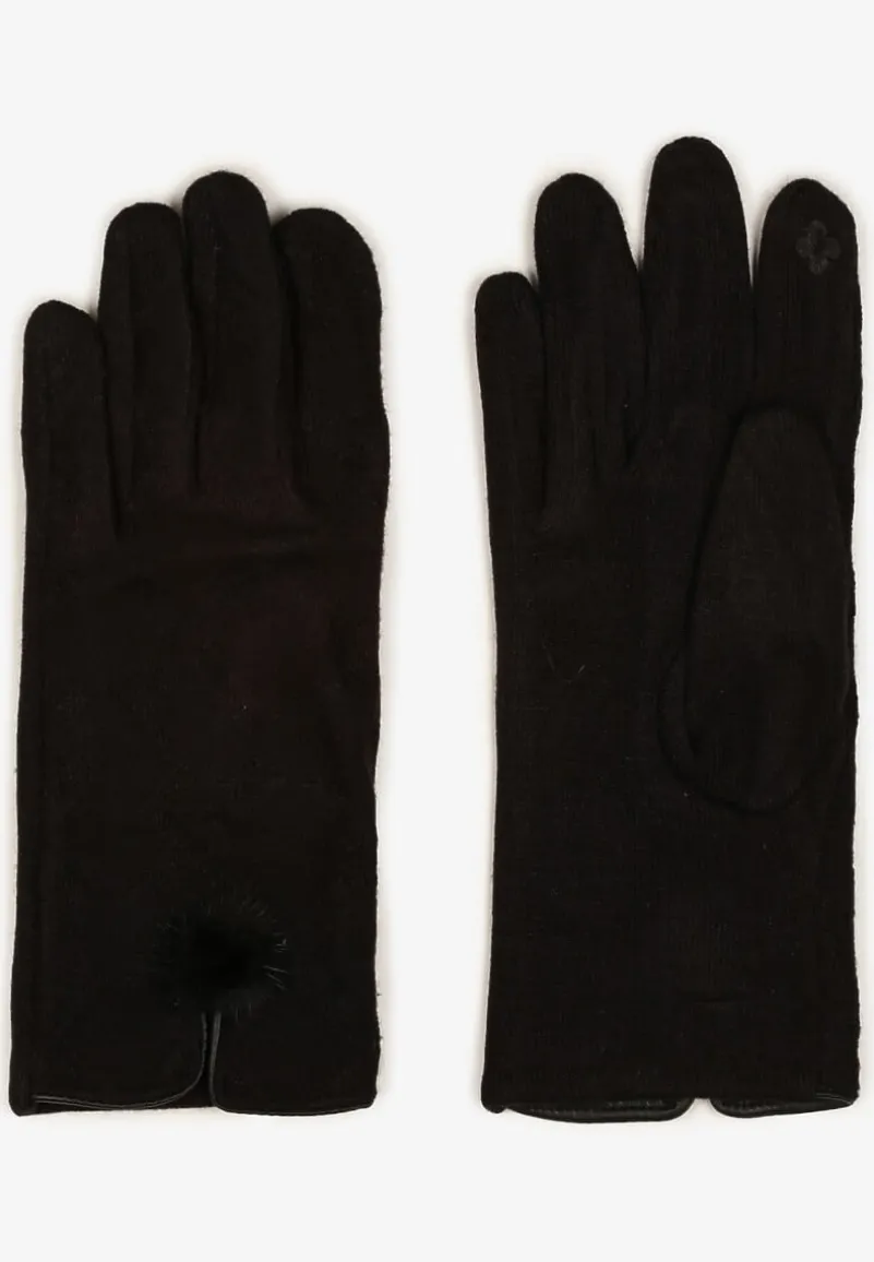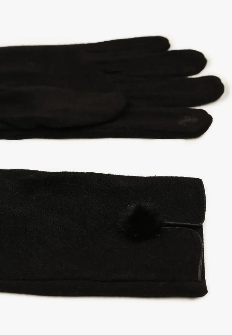 Czarne Rękawiczki z Bawełną Ozdobione Pomponem i Rozcięciem Zinnaletha