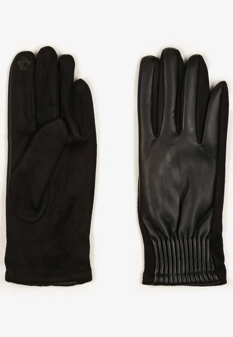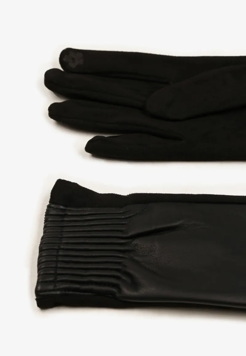 Czarne Rękawiczki z Marszczonym Wzorem Lynlemi