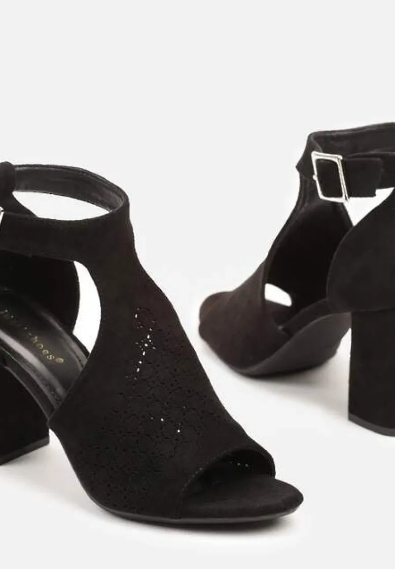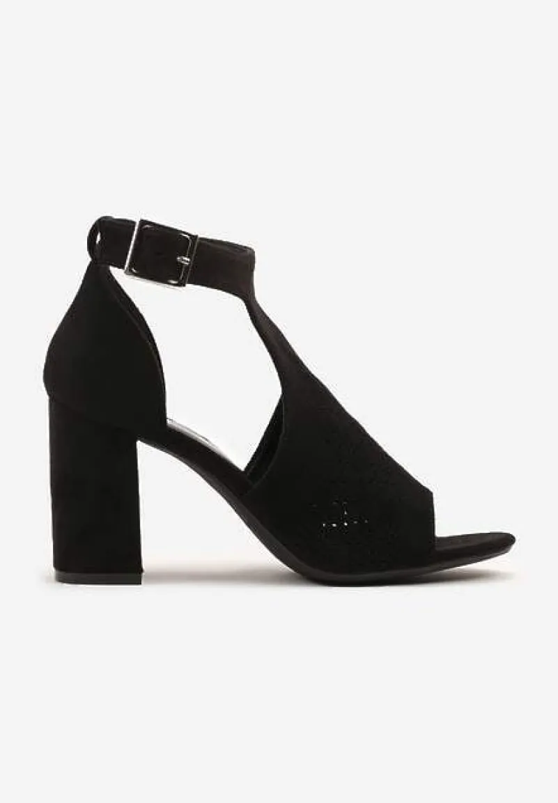 Czarne Sandały Botki ze Sprzączką na Słupku Ciarilora