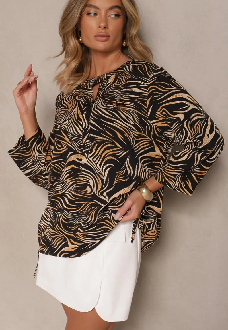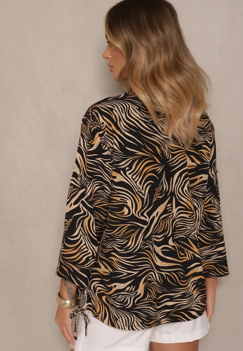 Odkryj bluzkę Lumenirae z Bawełną na guziki, która wprowadzi do Twojej garderoby unikalny, artystyczny styl! Z podwijanymi rękawami i ściągaczami po bokach perfekcyjnie sprawdzi się zarówno w casualowych, jak i formalnych stylizacjach. Wzór inspirowany abstrakcyjną sztuką dodaje wyjątkowego charakteru. Świetnie skomponuje się z klasycznymi spodniami na spotkanie oraz z ulubionymi jeansami na zakupy z przyjaciółkami – wyglądaj rewelacyjnie w każdej sytuacji!