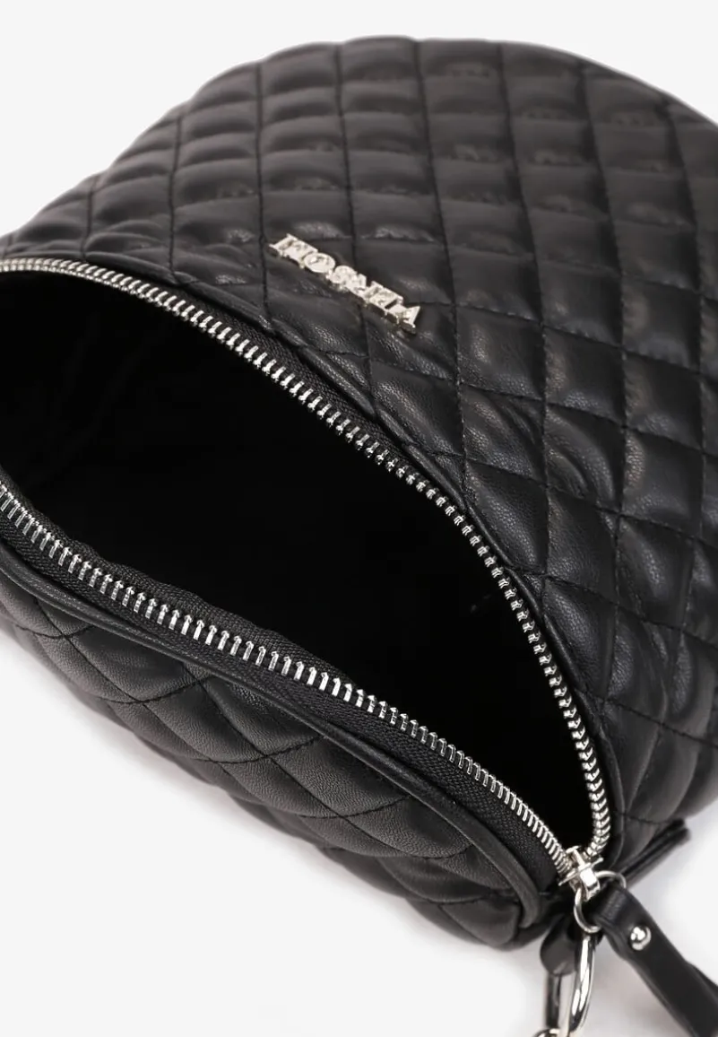 Torebka Maryshell udekorowana szyciem tworzącym pikowanie, z metalowym napisem i zapięciem na zamek błyskawiczny po boku. Suwak z zawieszonymi paskami. Paski ozdobione okrągłymi nitami i kontrastową lamówką. W środku torebki znajduje się dodatkowo wsuwana kieszeń. Na regulowanym pasku z napisem i klamrą. Nie mieści formatu A4. Wykonana z ekoskóry. To oryginalna torebka, która łączy w sobie styl sportowy i glamour!