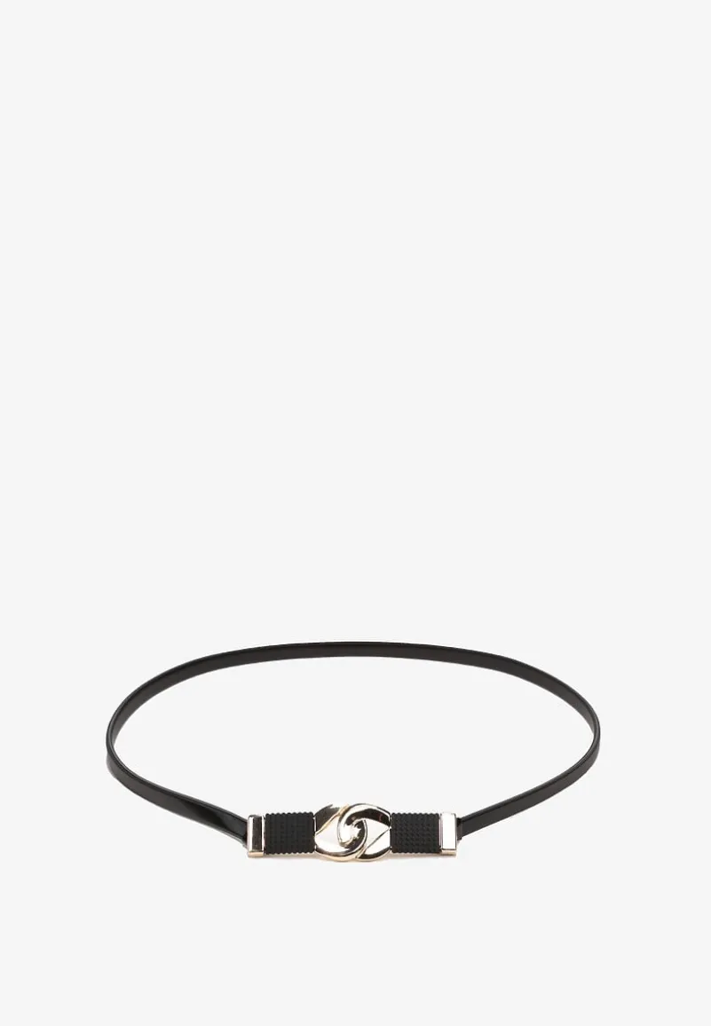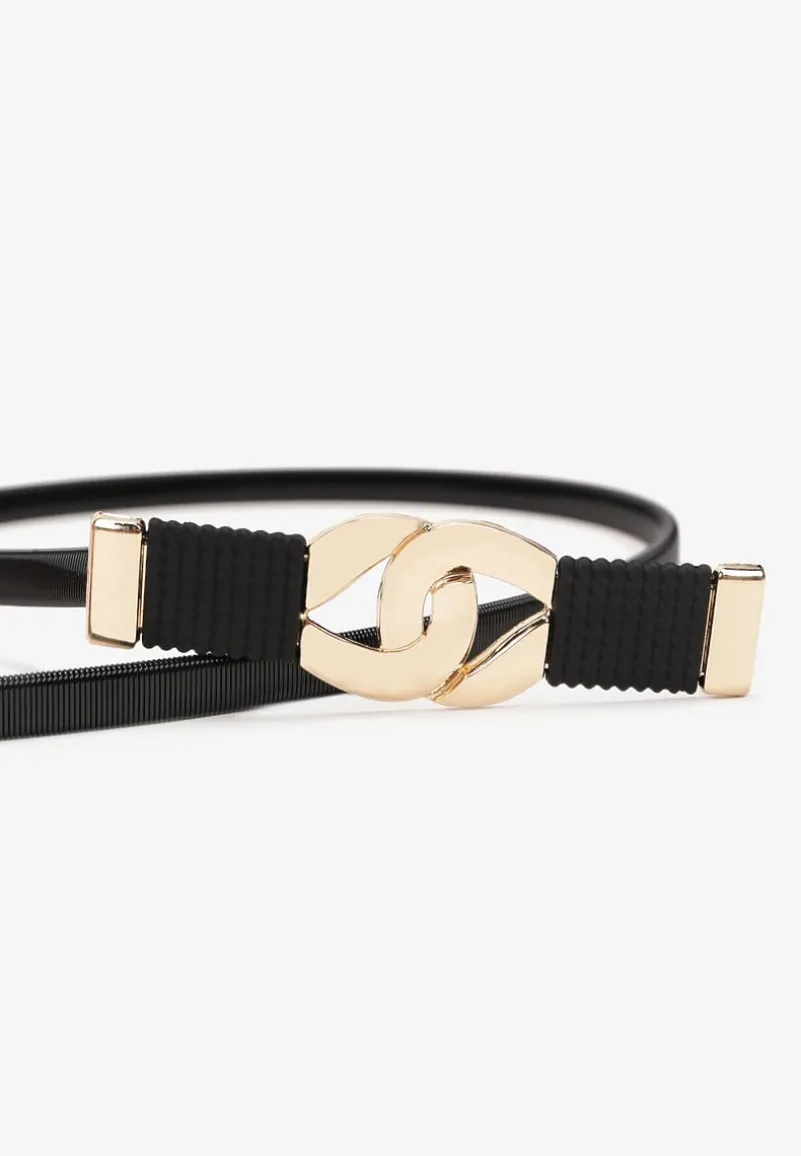 Pasek Jazzie o elastycznym, metalicznym fasonie. Zapiany z przodu na dekoracyjną klamerkę.