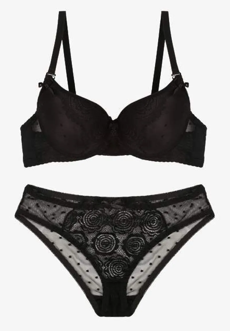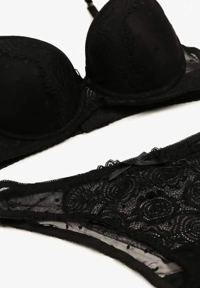 Komplet Arrbelia, z finezyjną linią i koronkowym wzorem, to kwintesencja kobiecości niezależnie od sezonu. Usztywnienie biustonosza na haftki gwarantuje dopasowanie. Fason fig z subtelną kokardką dodaje uroku, a ponadczasowe zdobienia z koronki sprawiają, że zestaw jest wyjątkowy. Spróbuj go połączyć z szyfonową koszulą i wysokim stanem spodni dla codziennej elegancji albo, na wieczór, wpasuj w look z satynową sukienką i fakturą weluru na okryciu wierzchnim, by podkreślić swój styl i klasę.