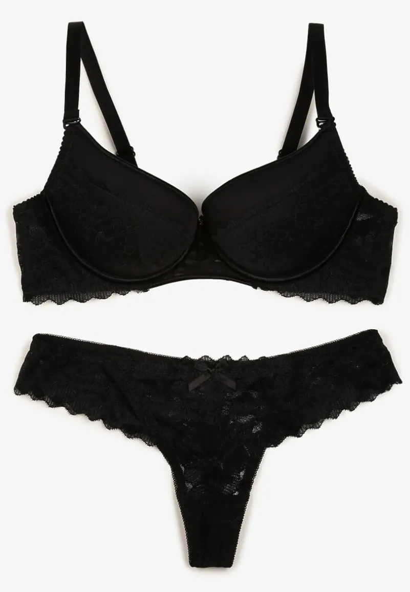Komplet bielizny Jasminesa to kwintesencja kobiecego uroku i współczesnych trendów. Usztywiony biustonosz push-up doskonale modeluje kształt piersi, podkreślając ich linie, a delikatny, koronkowy wzór dodaje odrobiny subtelności. Figi o klasycznym fasonie doskonale współgrają z biustonoszem, tworząc spójną całość z finezyjnymi zdobieniami. Jest to idealna propozycja zarówno na codzienne, jak i wyjątkowe okazje – dołącz ulubioną koszulę i marynarkę dla eleganckiego zestawu do pracy lub połącz z satynową szlafroką na wieczorne chwile relaksu.