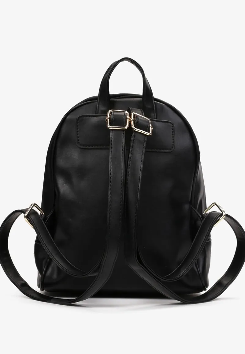 Plecak Aggios w casualowym stylu, wykonany z gładkiej ekoskóry. Model zapinany na podwójny suwak, jednokomorowy. Zawieszony na regulowanych szelkach, z dodatkowym, krótkim uchwytem. Na zewnątrz na dole, podłużna, zasuwana kieszonka. Dekoracyjna naszywka na górze. Noś na co dzień zamiast shopperki.