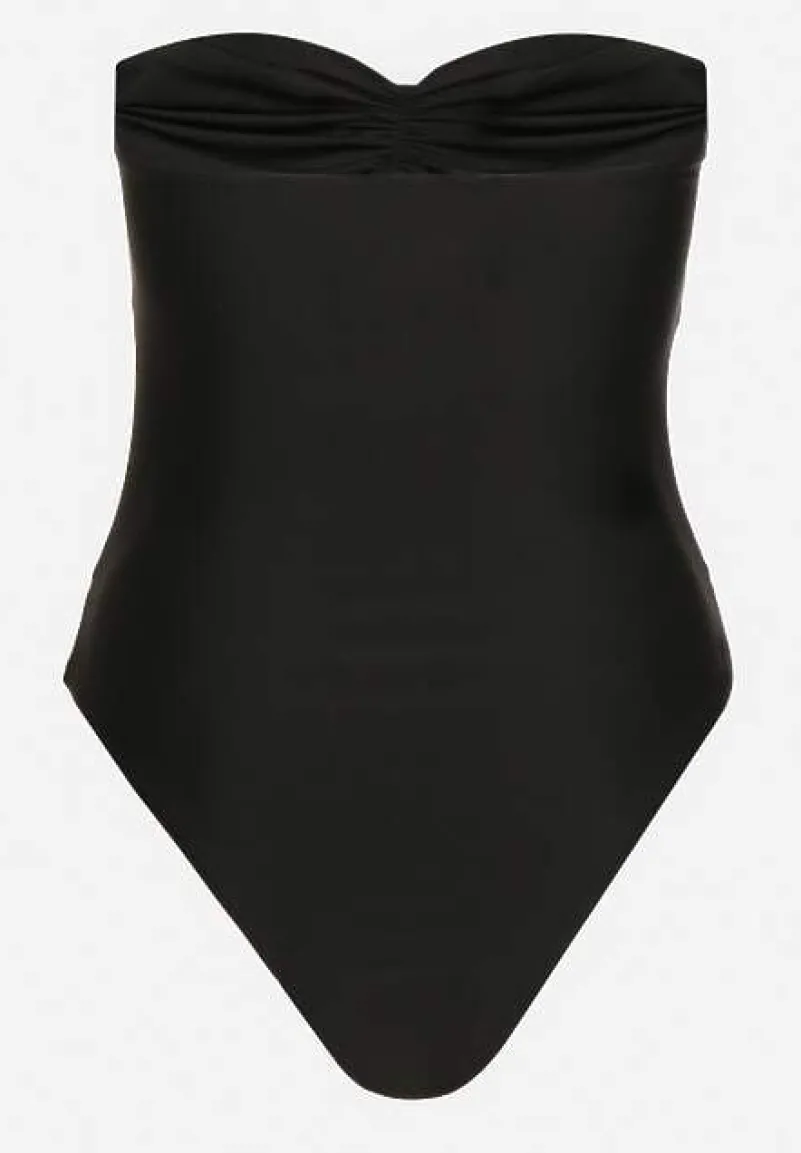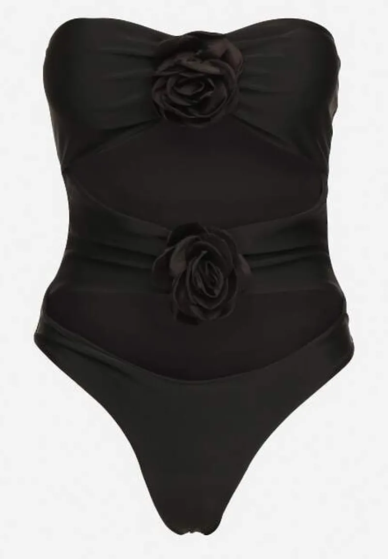 Czarny Strój Kąpielowy Jednoczęściowy z Usztywnionymi Miseczkami Kwiatami 3D i Wycięciami Irisfay
