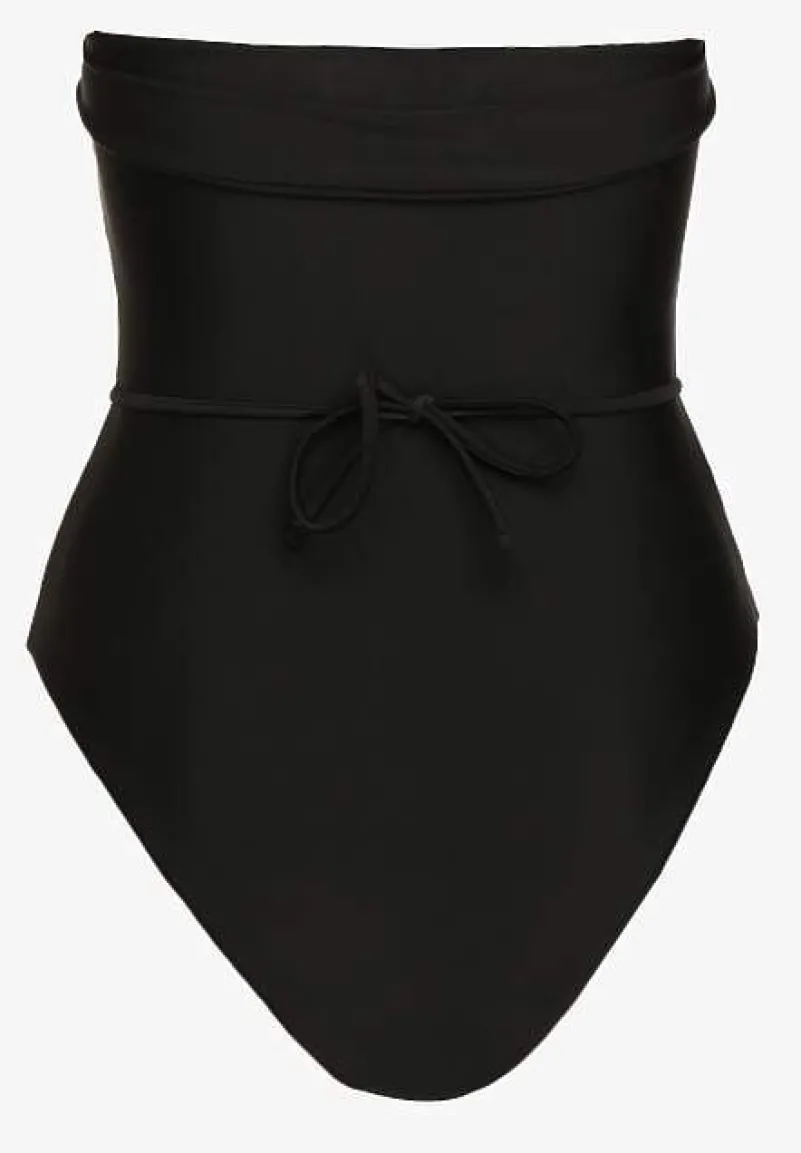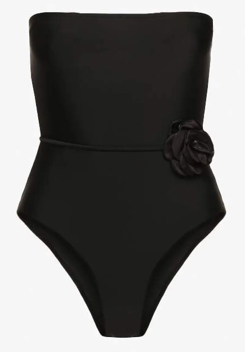 Czarny Strój Kąpielowy z Paskiem i Naszyjnikiem z Kwiatem 3D Irisrita