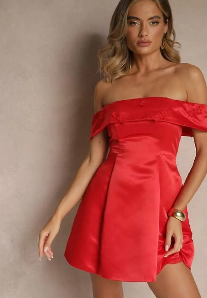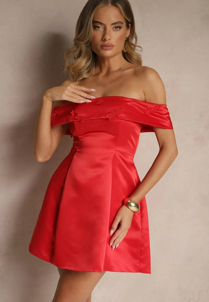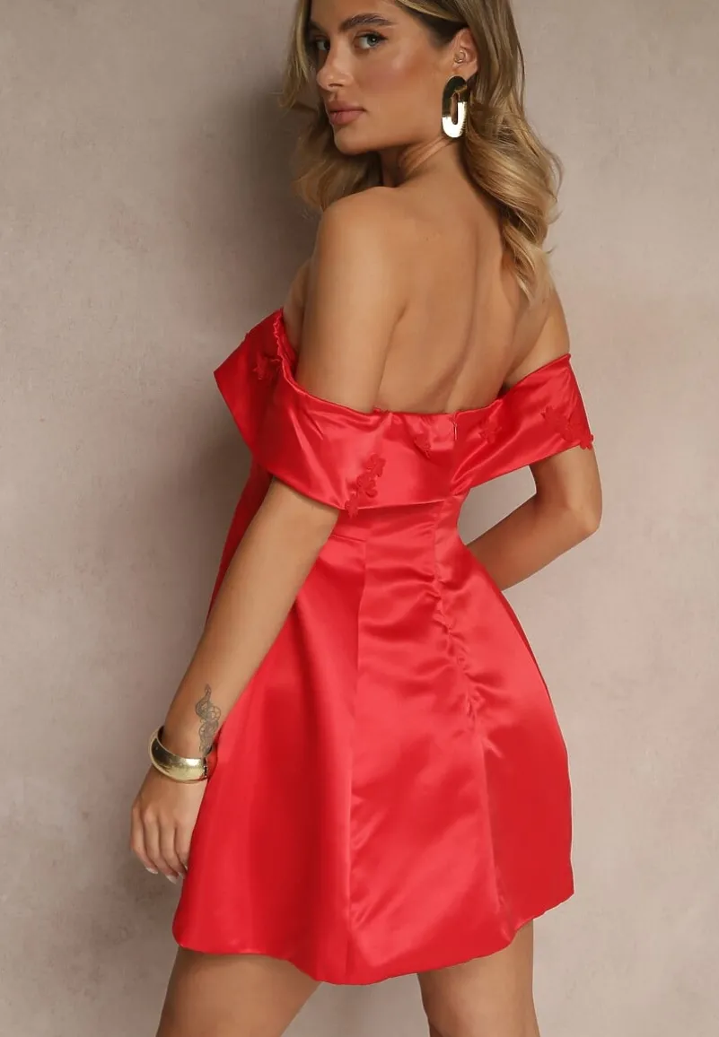 Czerwona Sukienka Hiszpanka Vices z Satyny Zdobiona Aplikacjami Fenilune