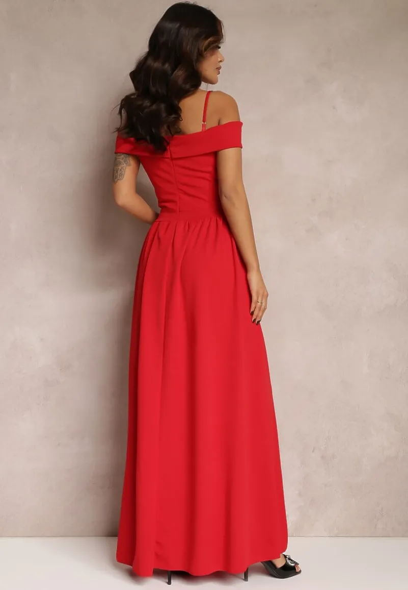 Czerwona Sukienka Koktajlowa z Głębokim Dekoltem Maxi Gelfe
