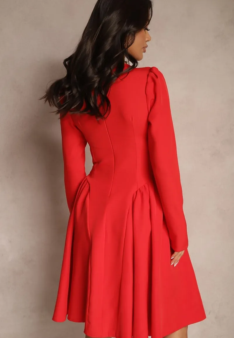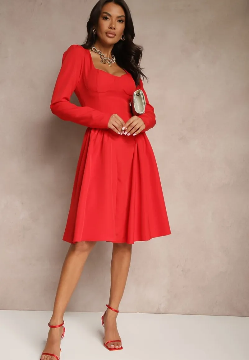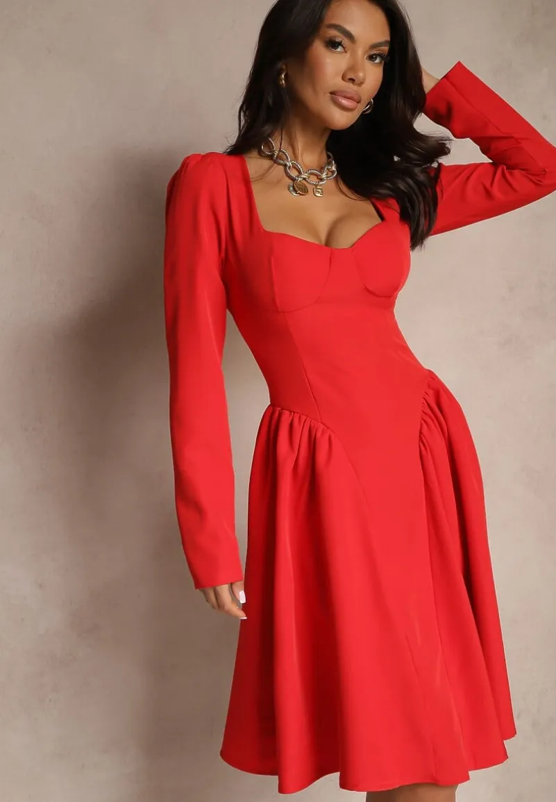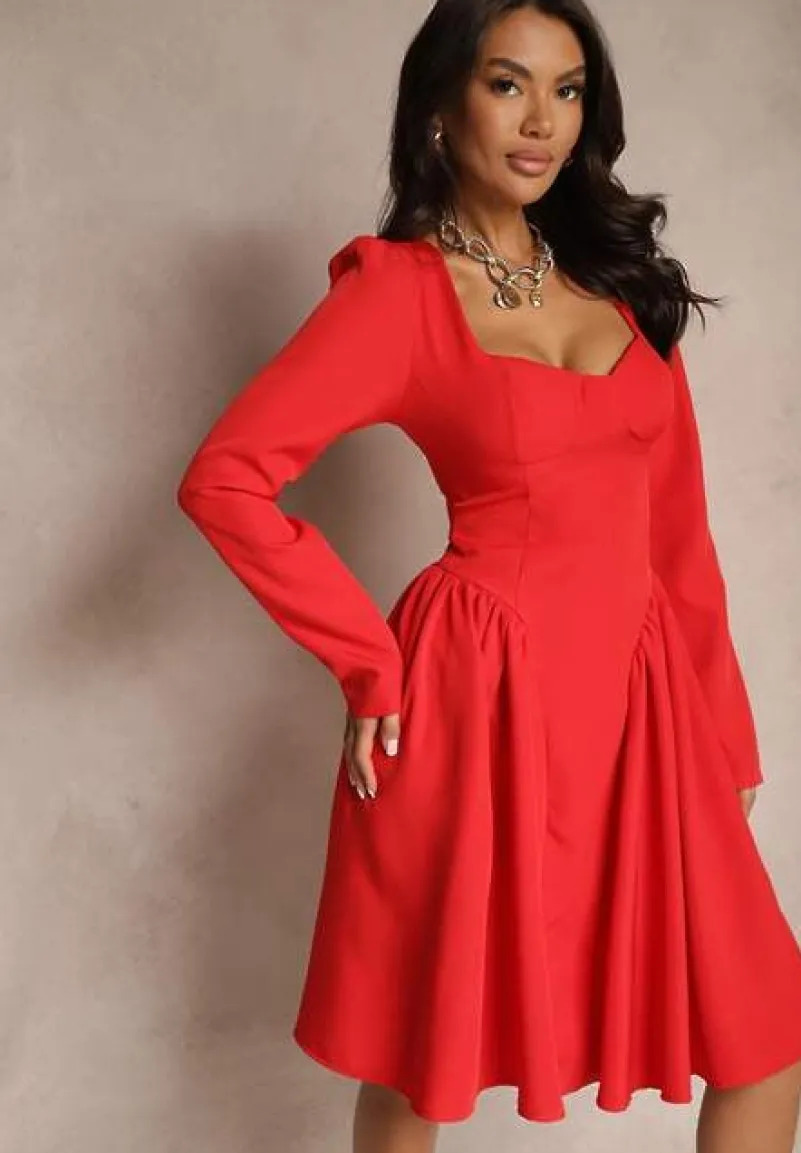 Czerwona Sukienka o Rozkloszowanym Kroju z Gorsetową Górą Tillitte