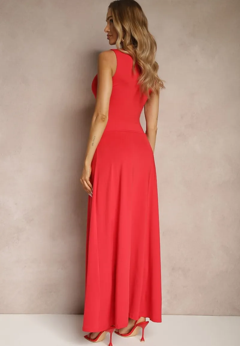 Czerwona Sukienka z Dopasowaną Górą i Rozkloszowanym Dołem Bez Rękawów Aspafle