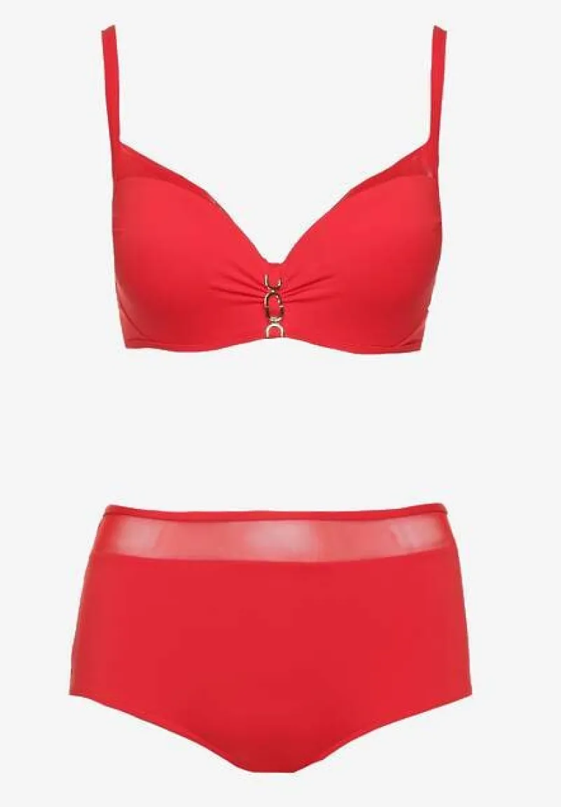 Czerwone Bikini Biustonosz Zdobiony Aplikacją i Majtki Typu Figi Iffirelle