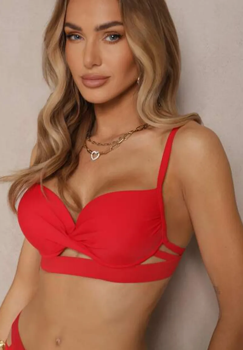 Czerwone Bikini z Ozdobnymi Wycięciami Wiązany Biustonosz i Majtki Figi Kinessa
