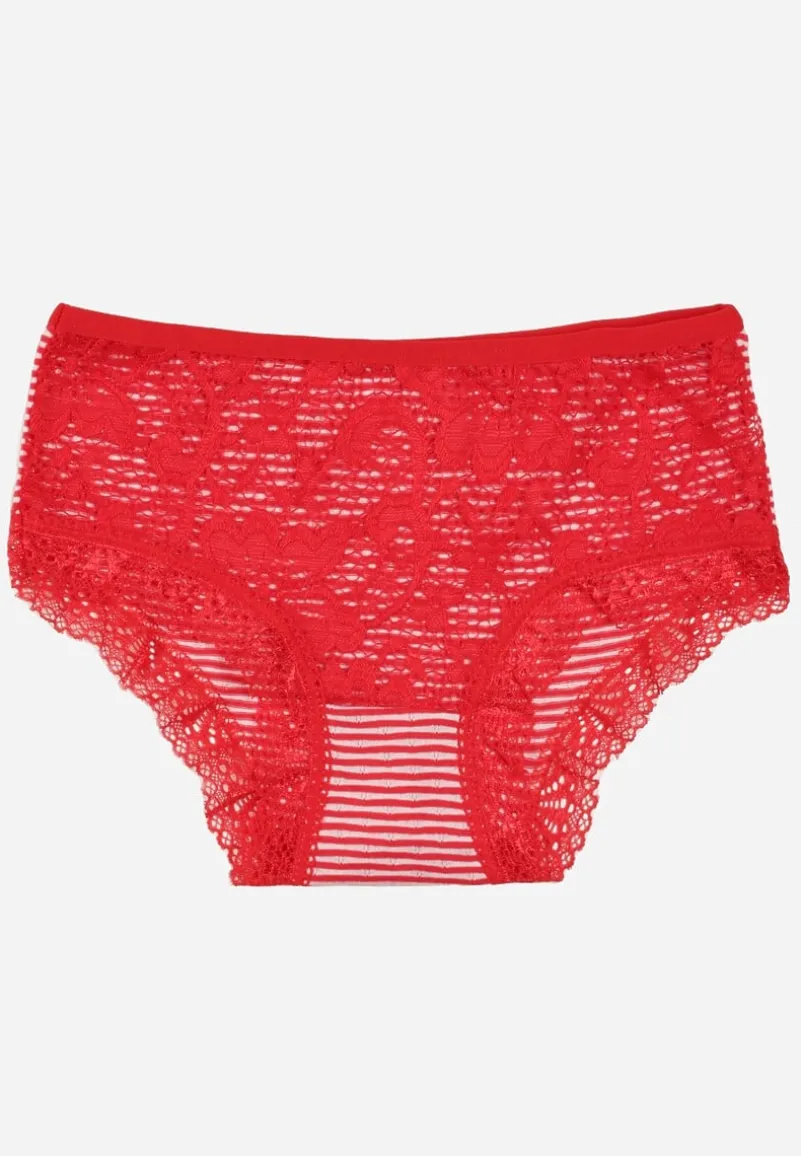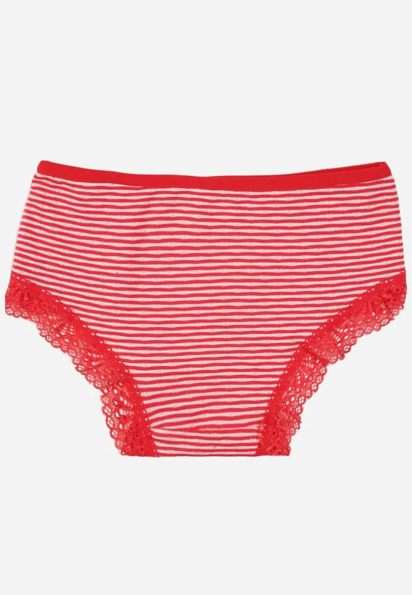 Majtki typu figi Kathrin wykonane z bawełny. Z przodu ozdobione koronką w kwiatki, a z tyłu cienkimi paskami. Będą świetne na co dzień!