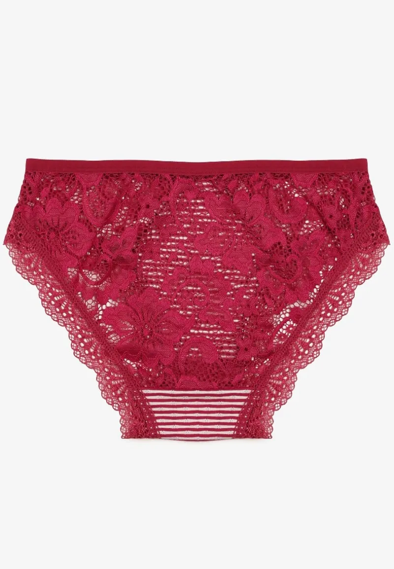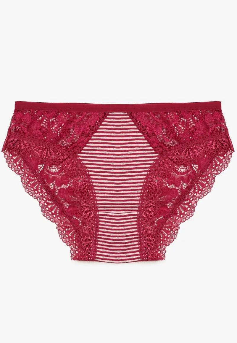 Bawełniane majtki figi Olibia ze wzorem w paseczki i koronką. To nie tylko piękny, ale także wygodny w noszeniu element garderoby.