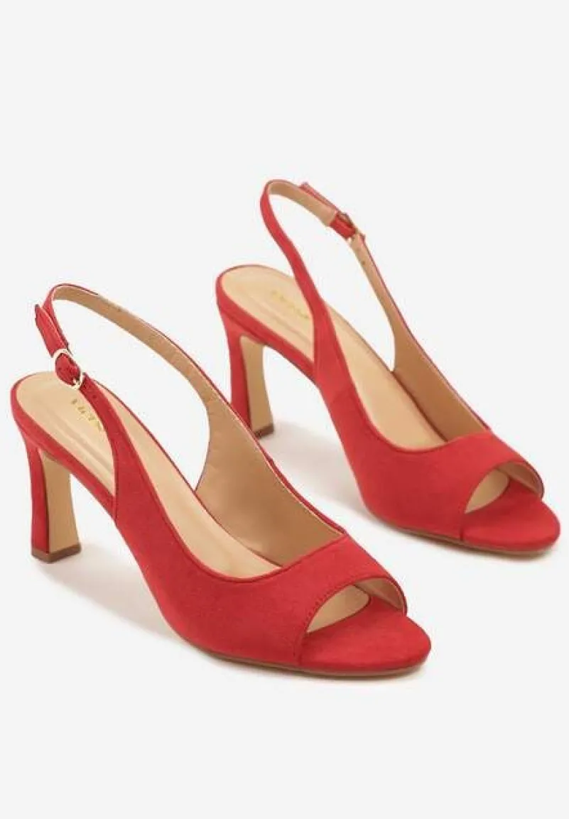 Czerwone Sandały Vices na Szpilce Ozdobione Paskiem Nitelinia