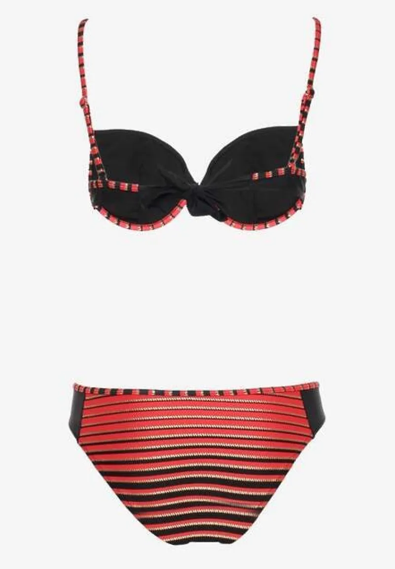 Czerwono-Czarne Bikini Dwuczęściowe w Paski Biustonosz i Figi Wialisa