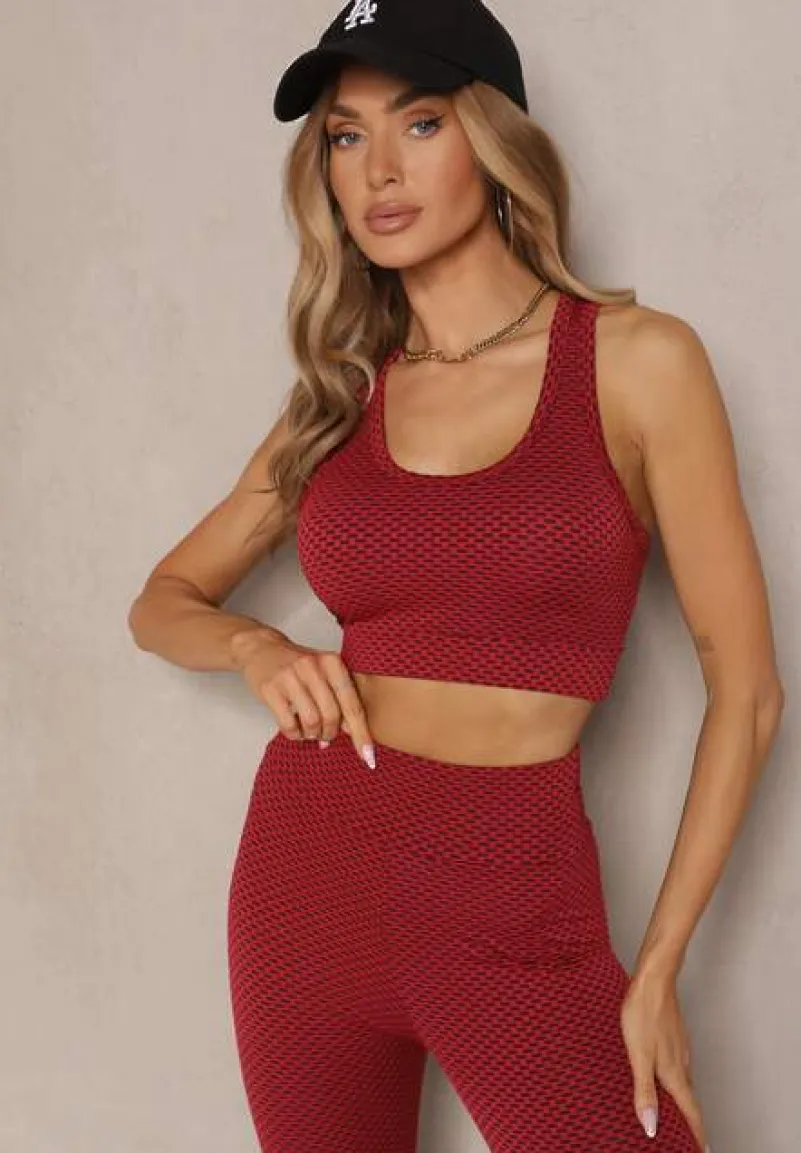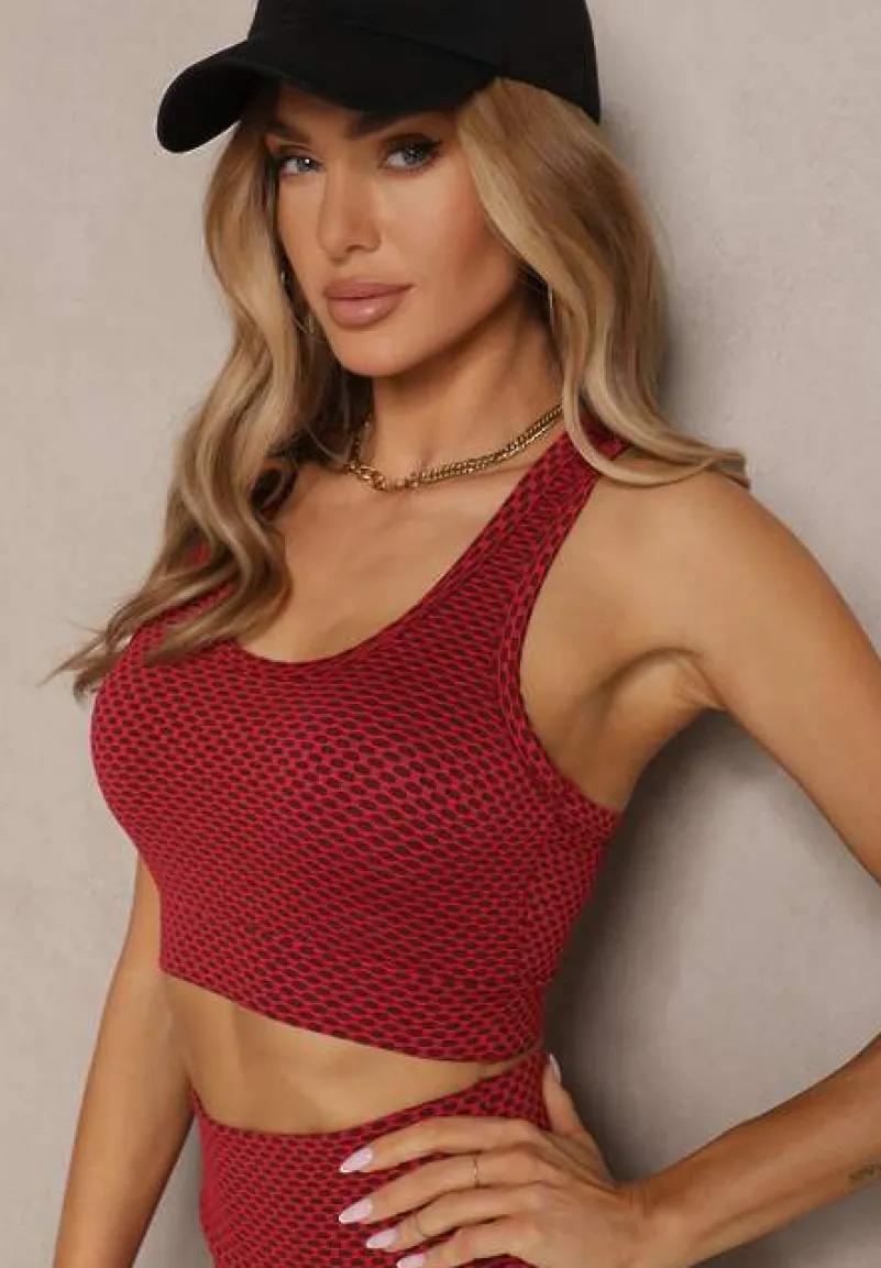 Czerwony Elastyczny Top Biustonosz w Sportowym Stylu Refettia