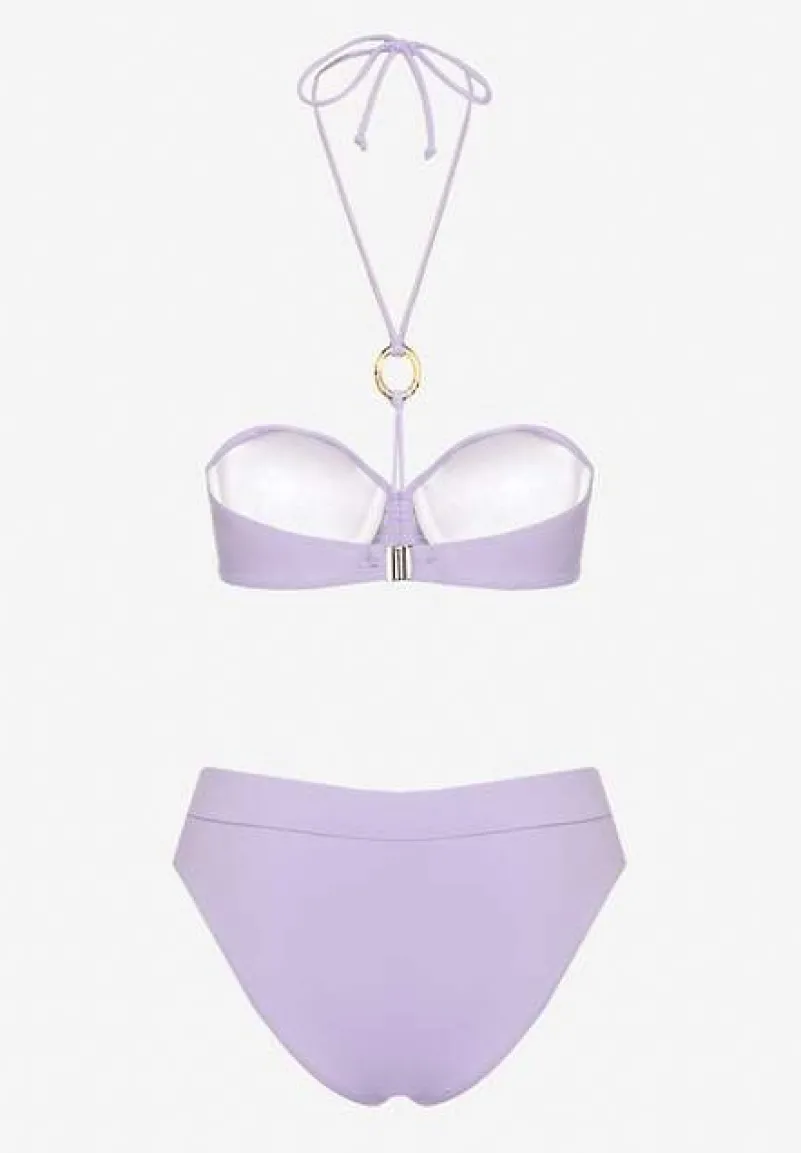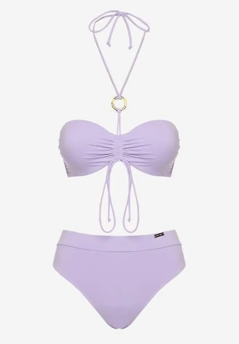 Fioletowe Bikini Figi i Usztywniany Biustonosz z Regulowanymi Ramiączkami Ozdobiony Sznurkiem Rosbia