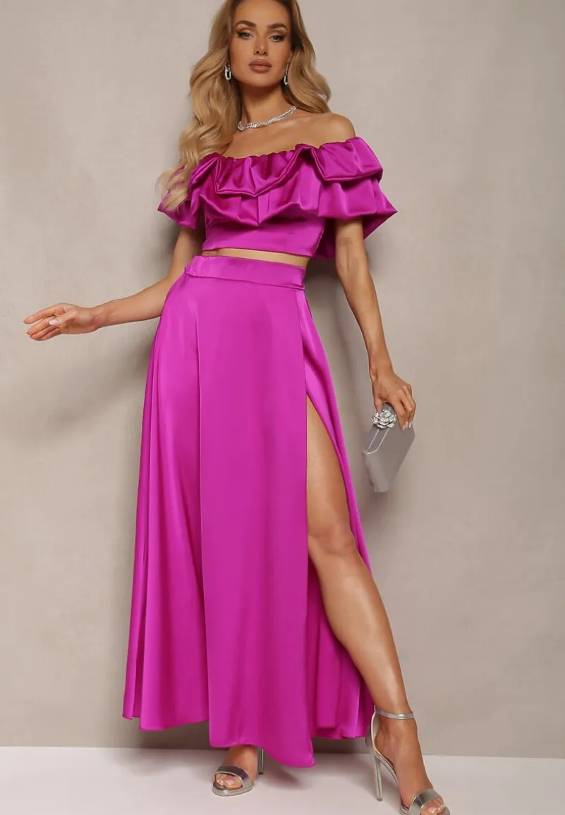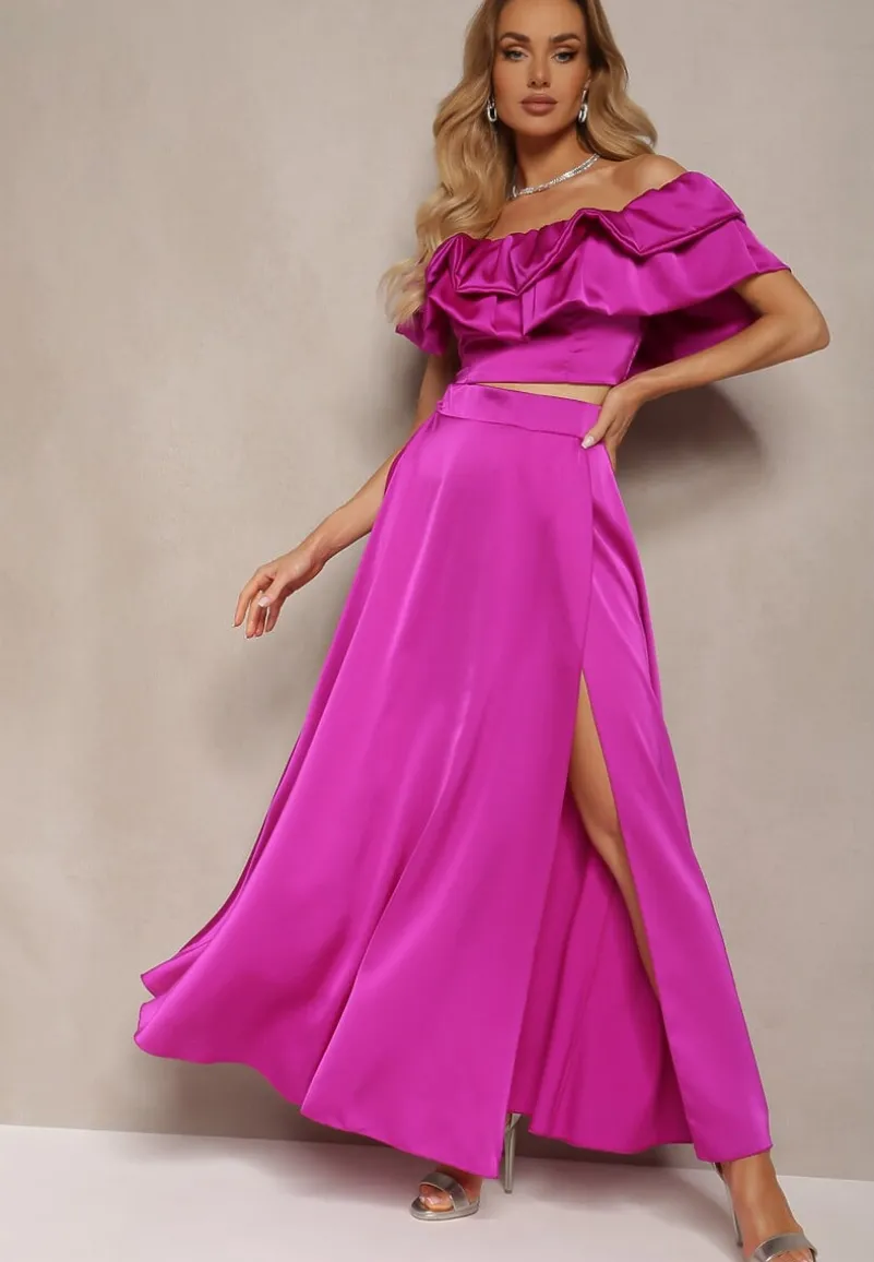 Komplet Virera to must-have każdej modnej kobiety, która chce podkreślić swoją kobiecość i osobowość. Hiszpanka idealnie wpisuje się w letnie wieczory oraz wielkie wyjścia, oferując swobodę ruchów i podkreślając ramiona. Długa spódnica o rozkloszowanym kształcie z rozcięciem na boku dodaje gracji przy każdym kroku. Stylizuj ten komplet z delikatnymi sandałami na obcasie i subtelną biżuterią na szczególne okazje — komplet Virera świetnie sprawdzi się na wesele.