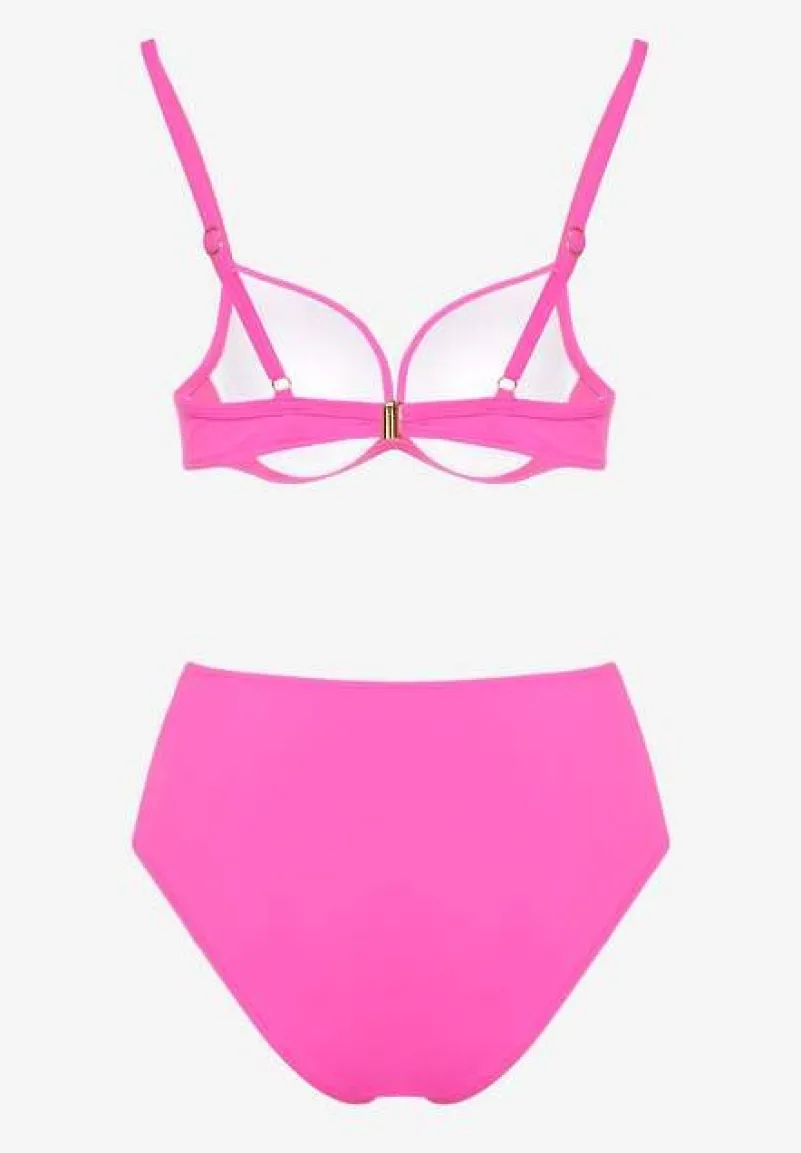 Fuksjowe Basicowe Bikini Biustonosz i Majtki Figi Natonea