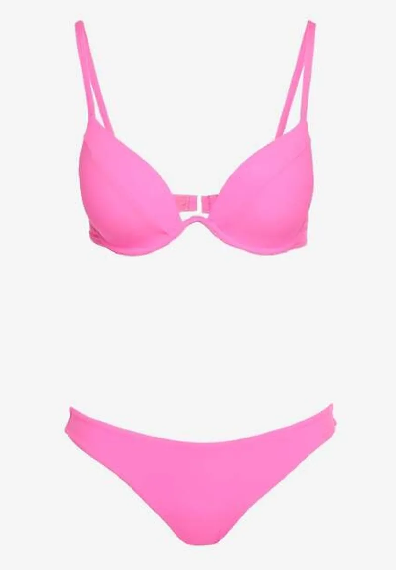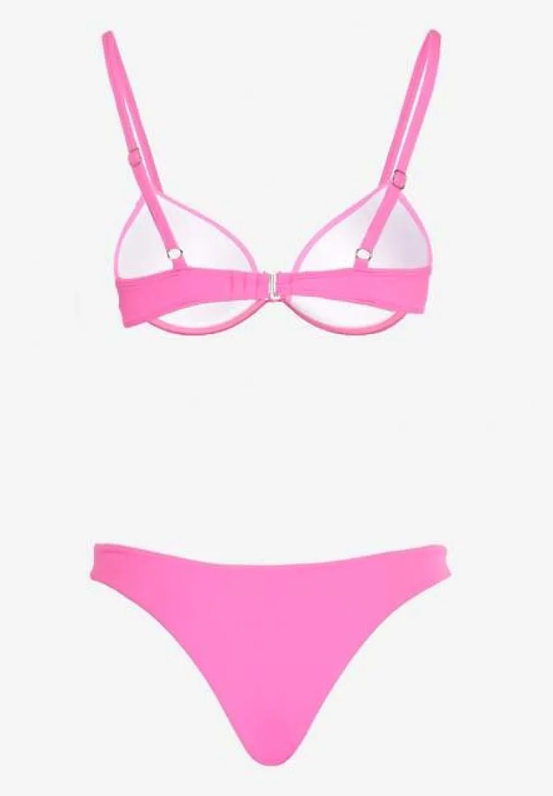 Fuksjowe Bikini Usztywniany Biustonosz z Zapięciem z Tyłu i Majtkami Figami Ermarie