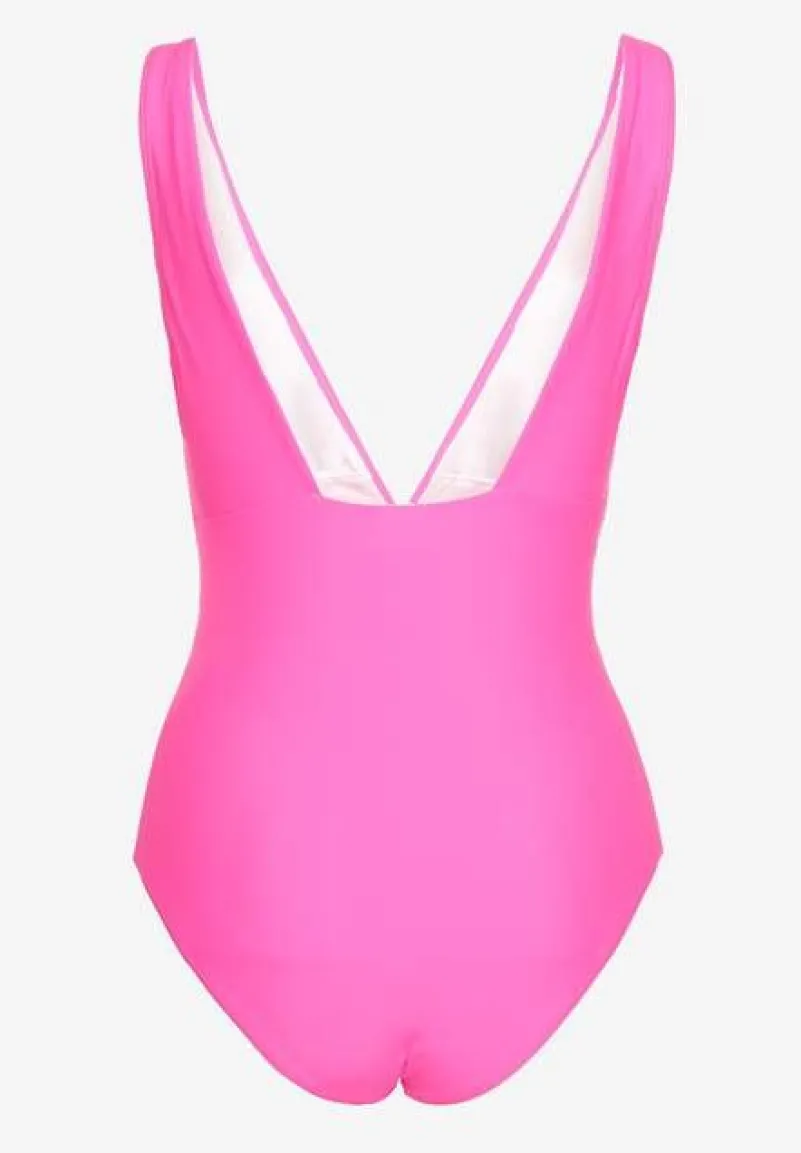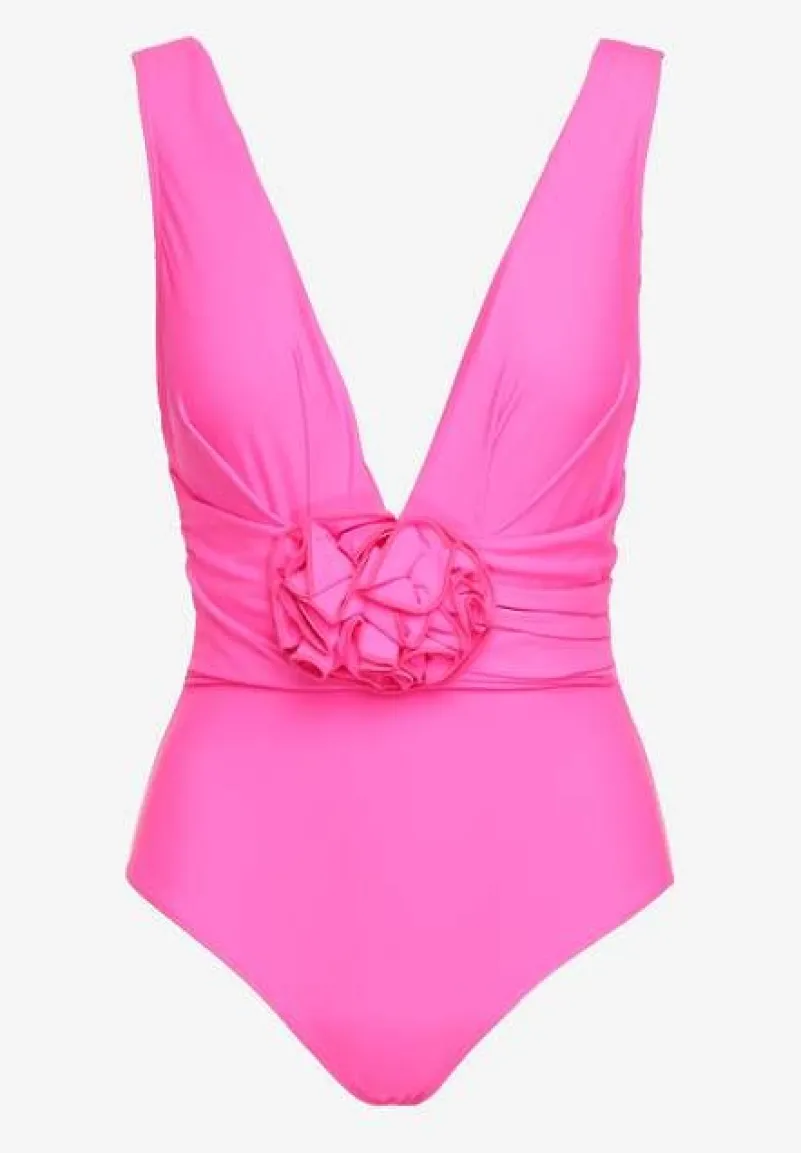 Fuksjowy Strój Kąpielowy Jednoczęściowy Ozdobiony Aplikacją Kwiatu 3D z Usztywnieniem Seliris