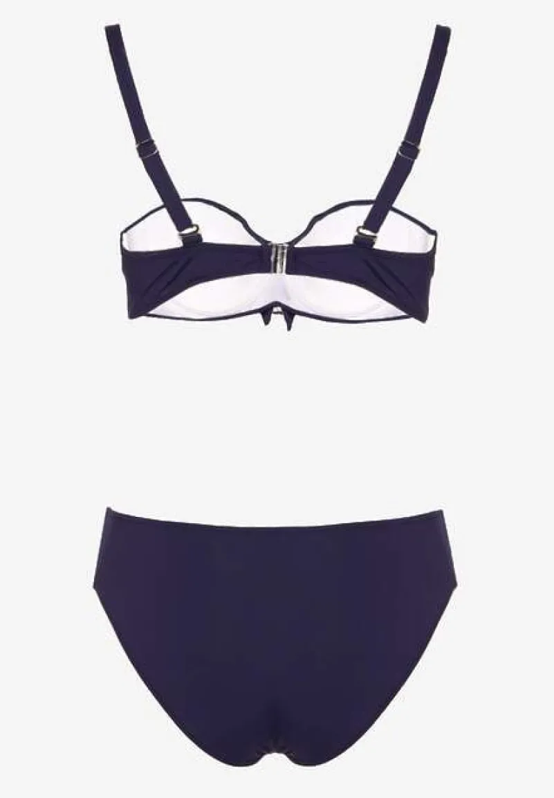 Granatowe Bikini Strój Kąpielowy Dwuczęściowy z Ozdobnym Marszczeniem Nariella