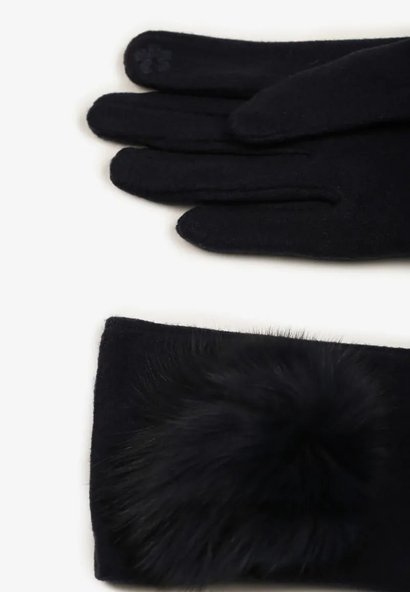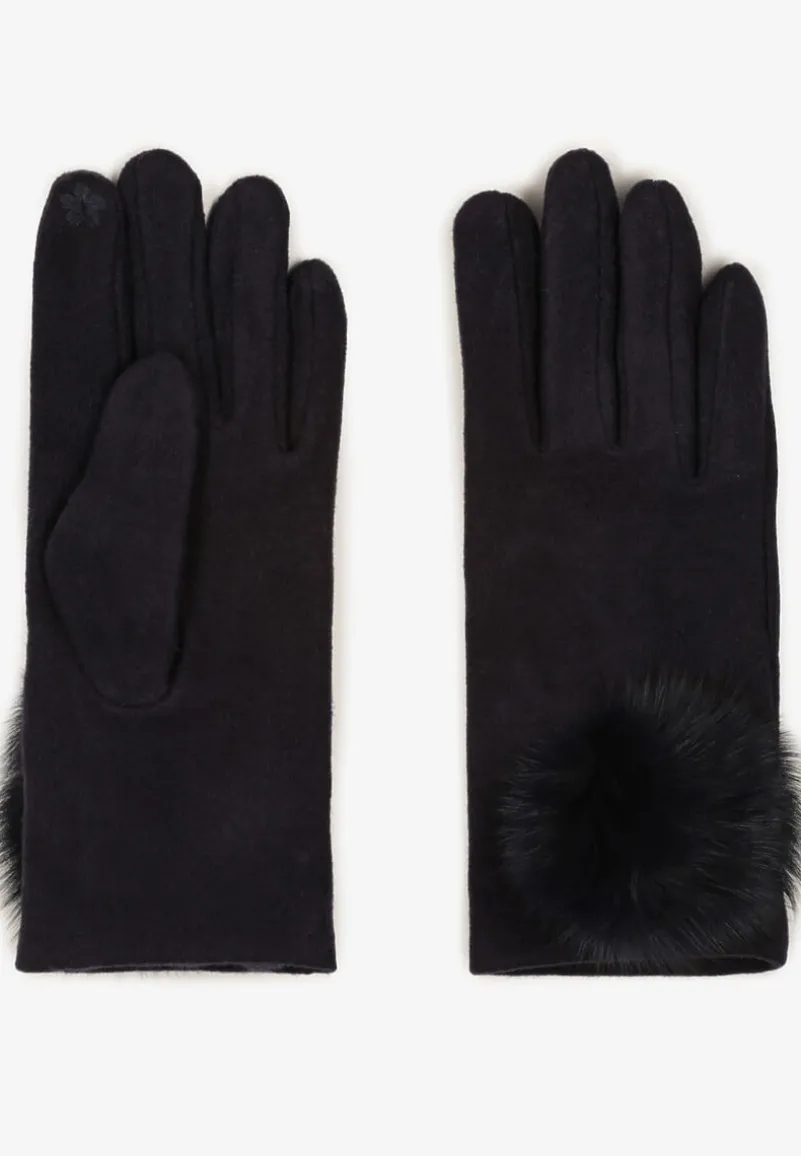 Granatowe Rękawiczki z Bawełną Ozdobione Futrzanym Pomponem Nadelina