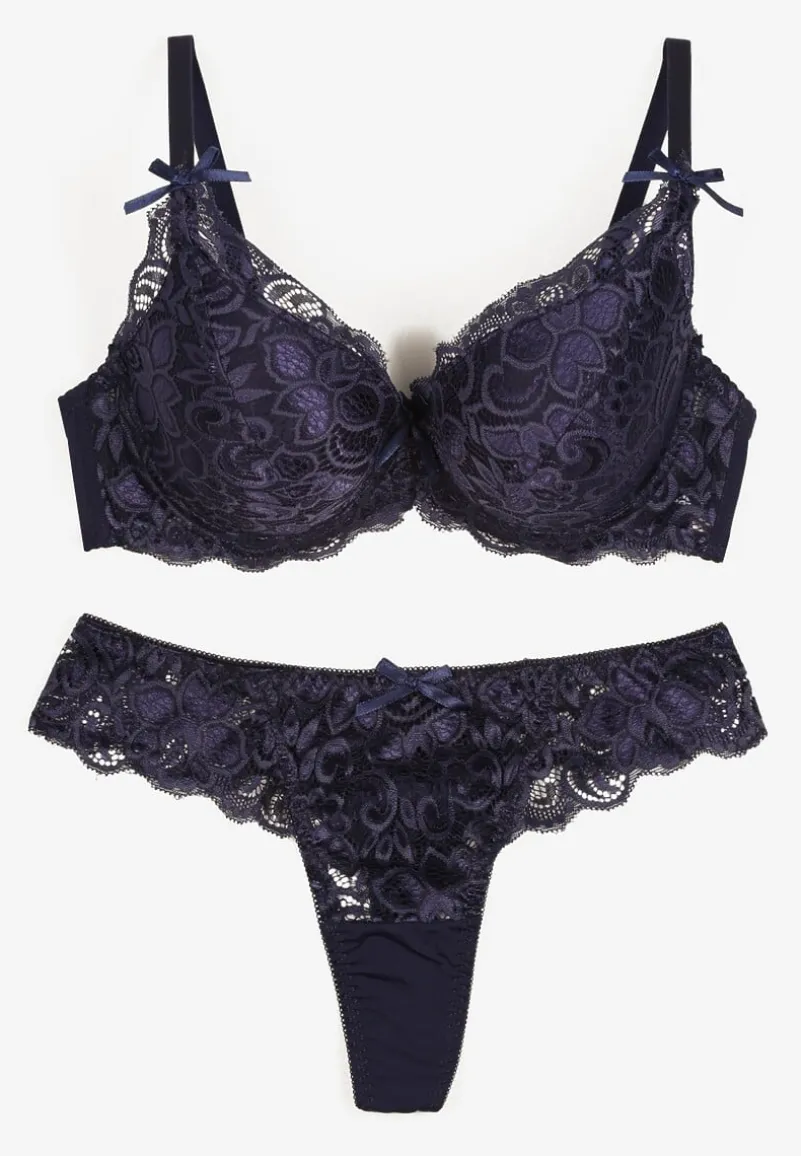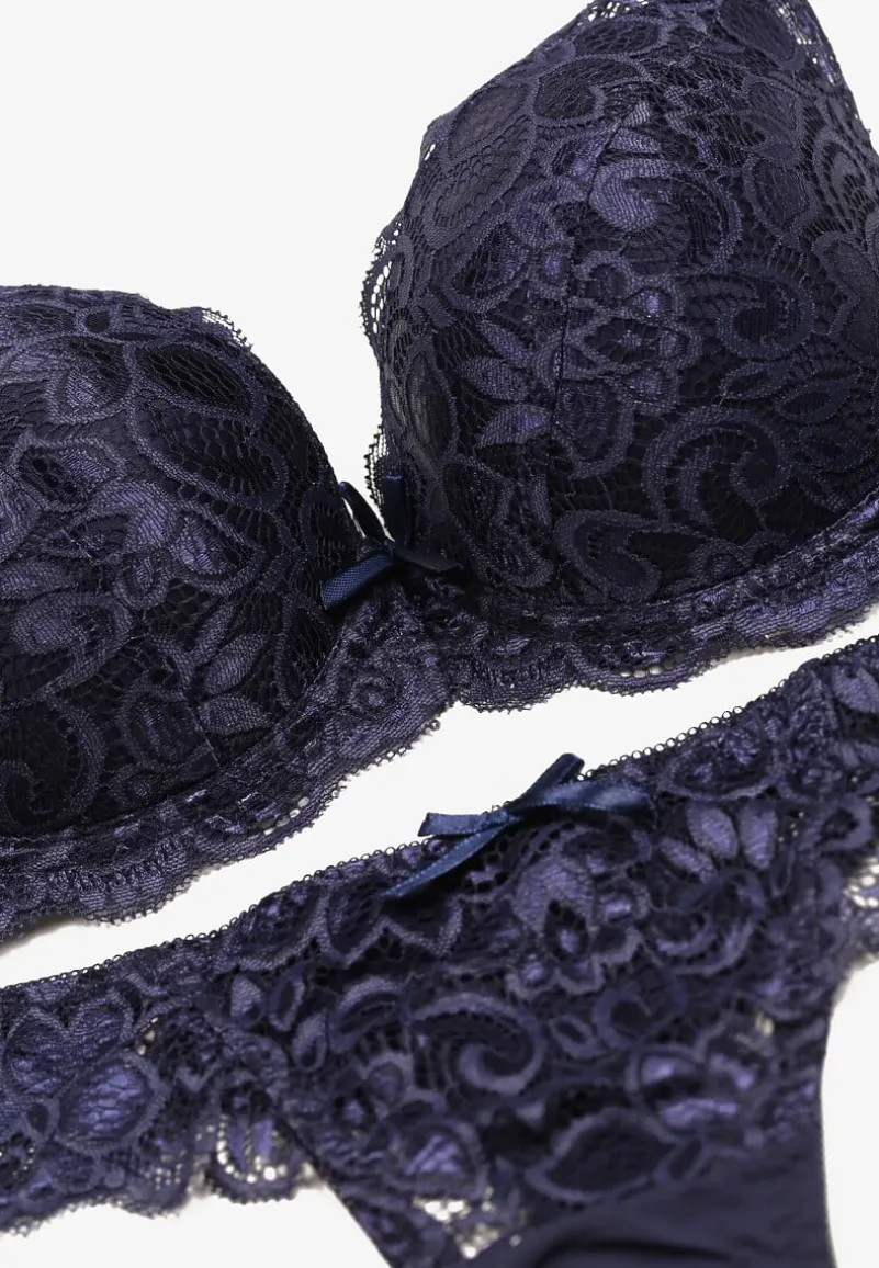 Komplet Bielizny z Koronką i Kokardkami to synonim kobiecości i subtelnego charakteru, który przemawia do nowoczesnych trendsetterek. Zjawiskowy wzór koronki pięknie podkreśla linie ciała, nadając sylwetce pożądanych kształtów, zaś starannie dobrane kokardki dodają całości uroku. Fason biustonosza i stringów gwarantuje zarówno wygodę, jak i wyraźną elastyczność materiału, umożliwiającą idealne dopasowanie. To zestaw, który możesz nosić pod ulubioną sukienką na romantyczną kolację.