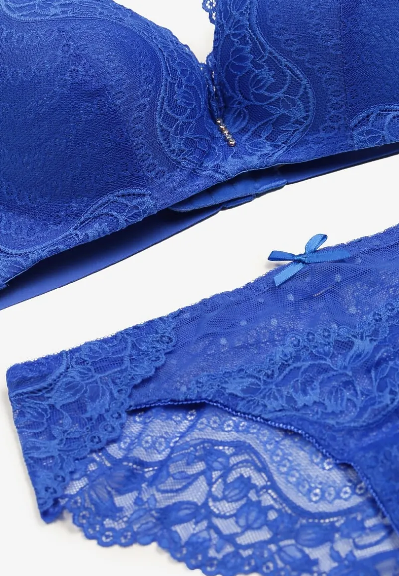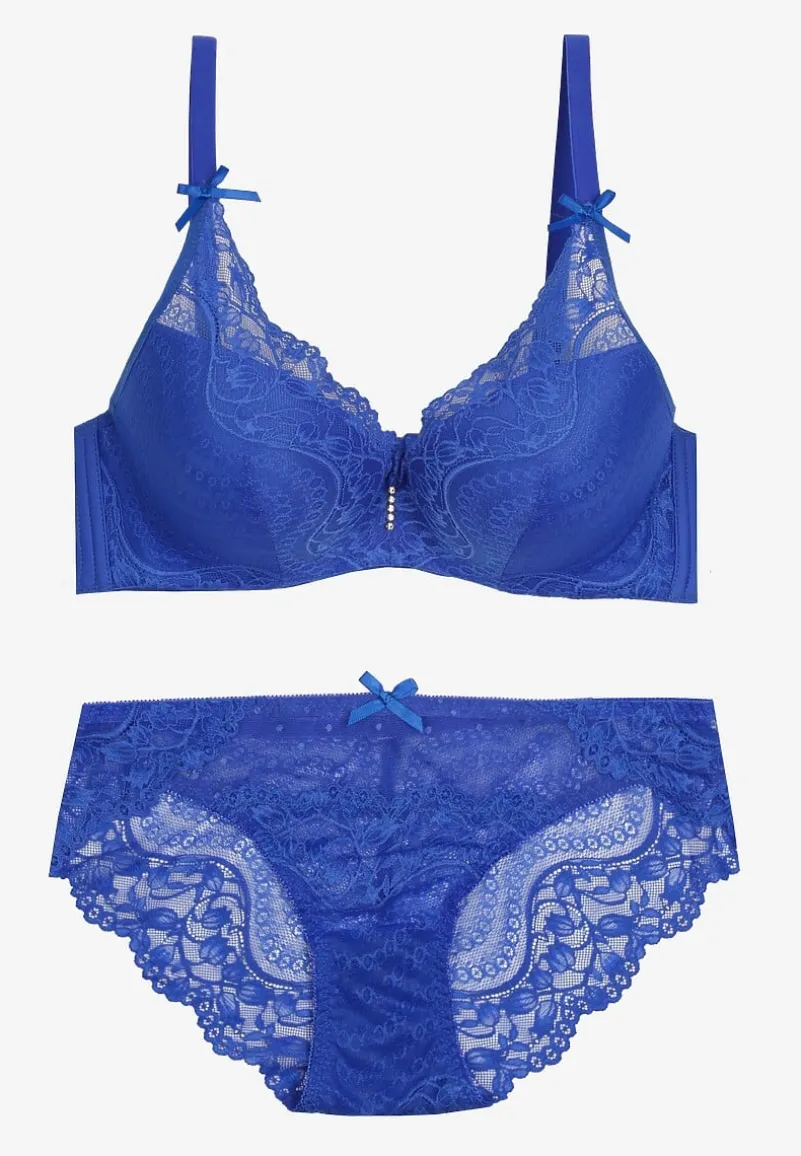 Komplet koronkowy Iriniues to synonim subtelności i kobiecości, idealny zarówno na co dzień, jak i na specjalne okazje. Koronkowa linia z delikatnym wzorem dodaje bieliźnie romantycznego charakteru, doskonale komponując się z sylwetką i zapewniając komfort noszenia dzięki elastycznemu materiałowi. Fason Full Cup biustonosza oraz majtki typu figi z kokardkami to połączenie klasyki z nowoczesnymi trendami.