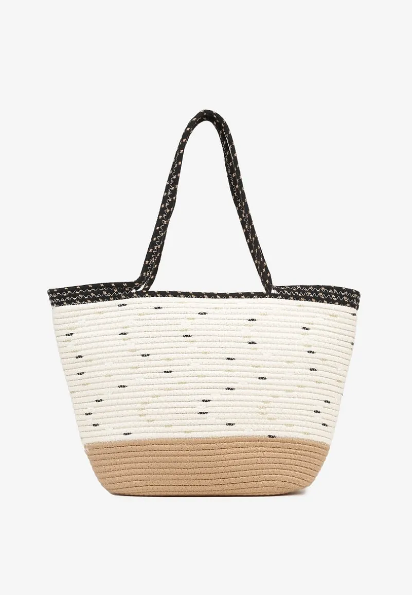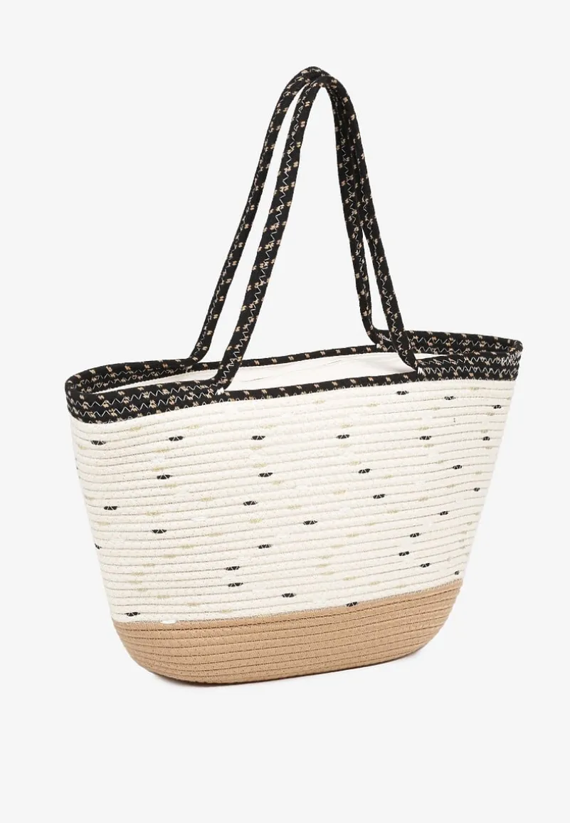 Pleciona torebka z bawełny typu shopper Izavera to must-have w każdej modnej garderobie! Jej obszerna wielkość sprawia, że pomieścisz w niej najważniejsze drobiazgi, w tym format A4 – idealna na zakupy, codzienne wyjścia czy spotkania ze znajomymi. Fason na suwak w stylu shopper jest nie tylko praktyczny, ale też na czasie, a naturalny materiał dodaje jej wyjątkowego charakteru. Stylizuj ją z casualową bluzą i jeansami na co dzień – z Izaverą zawsze będziesz wyglądać świetnie!