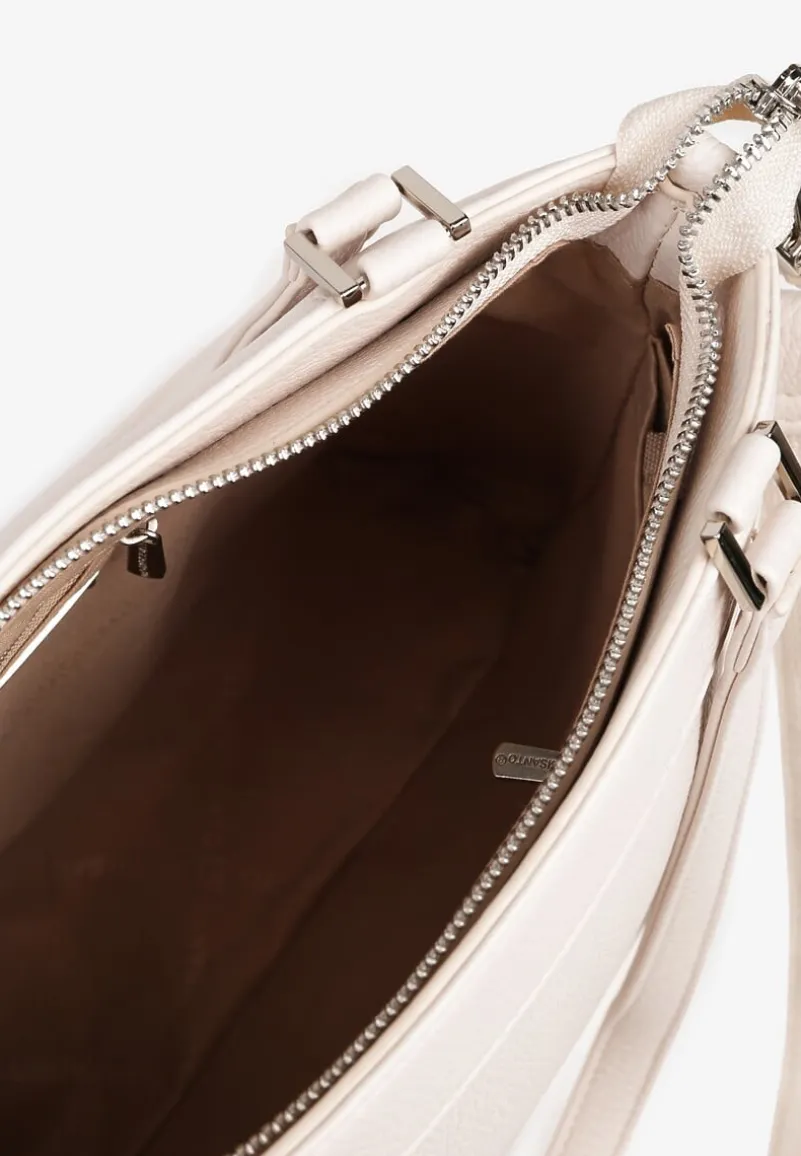 Wprowadź do swojej garderoby stylową torebkę Nilomena z kieszonkami na suwak, na regulowanym pasku. Świetnie sprawdzi się zarówno w biurze, jak i na spotkaniach z przyjaciółkami. Wyróżnia się efektownym, metalicznym napisem, który dodaje jej wyjątkowego charakteru. Stylizuj ją z casualową bluzą i rozkloszowanymi spodniami na co dzień, a na formalne wyjścia zestaw z elegancką sukienką i szpilkami – z tą torebką zawsze będziesz wyglądać olśniewająco!