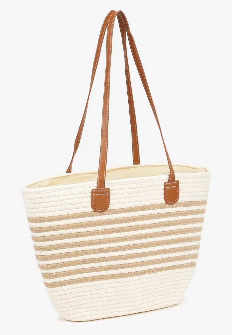 Torebka Shopperka z Bawełną Ozdobiona Paskami Liradora to must-have w szafie każdej modnej kobiety! Jej przestronny fason na suwak zmieści wszystkie niezbędne drobiazgi, w tym format A4, co czyni ją idealnym towarzyszem na co dzień. Uszyta z bawełną, zachwyca detalami w postaci ozdobnych pasków, które dodają jej charakteru. Stylizuj ją z ulubionymi jeansami i zwiewną bluzką na lunch z przyjaciółkami – zawsze będziesz czuć się pewnie i stylowo!