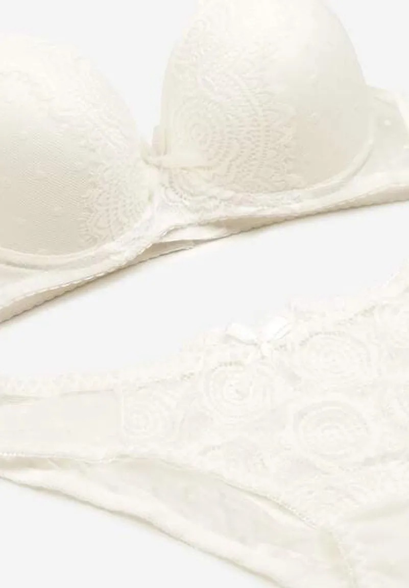 Komplet Arrbelia, z finezyjną linią i koronkowym wzorem, to kwintesencja kobiecości niezależnie od sezonu. Usztywnienie biustonosza na haftki gwarantuje dopasowanie. Fason fig z subtelną kokardką dodaje uroku, a ponadczasowe zdobienia z koronki sprawiają, że zestaw jest wyjątkowy. Spróbuj go połączyć z szyfonową koszulą i wysokim stanem spodni dla codziennej elegancji albo, na wieczór, wpasuj w look z satynową sukienką i fakturą weluru na okryciu wierzchnim, by podkreślić swój styl i klasę.