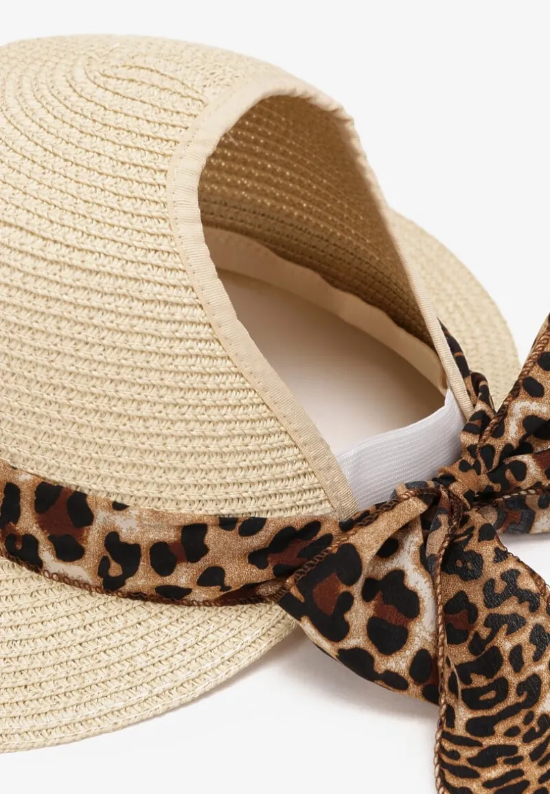 Szeroki, pleciony kapelusz, udekorowany materiałowym paskiem, wiązanym na kokardkę. Regulowany obwód i specjalny otwór na kucyk z tyłu sprawiają, że to idealny wybór do wakacyjnych stylizacji na wiele okazji.
