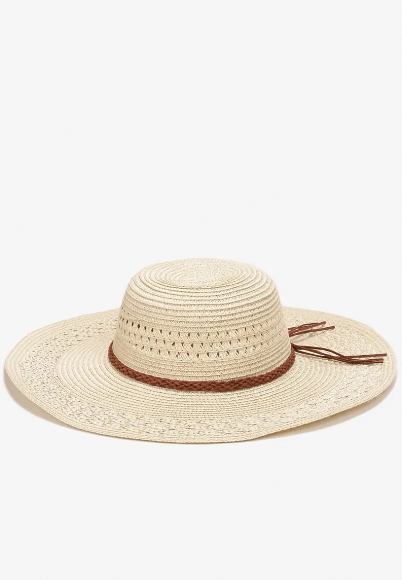 Idealny, pleciony kapelusz z szerokim rondem na plażę.