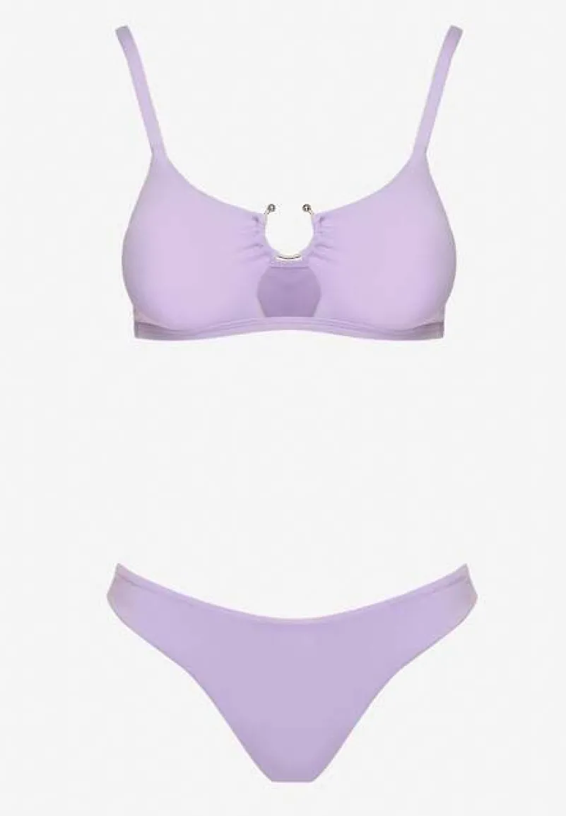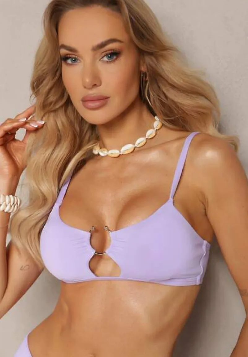 Jasnofioletowe Bikini Nieodpinany Biustonosz z Usztywnianymi Miseczkami i Klamerką przy Dekolcie na Regulowanych Ramiączkach Majtki z Elastyczną Gumką w Pasie Kiaramarie