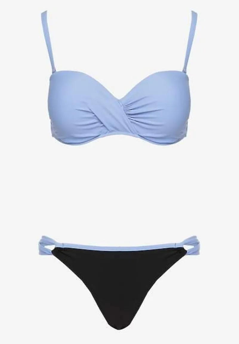 Jasnoniebieskie Bikini Majtki Figi i Biustonosz z Marszczeniem Sepiana