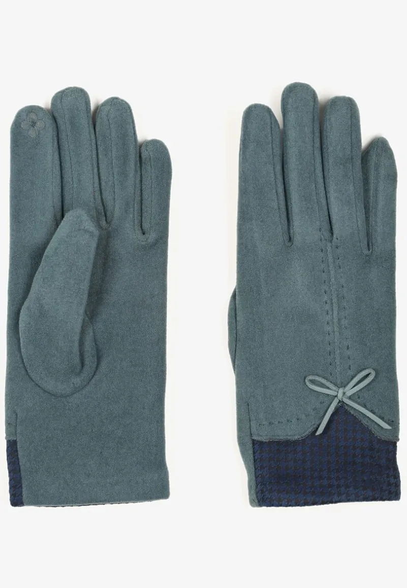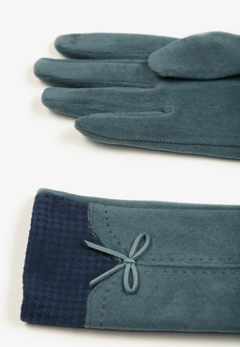 Jasnoniebieskie Rękawiczki z Bawełną Cyrkoniami i Kokardką Adelirra