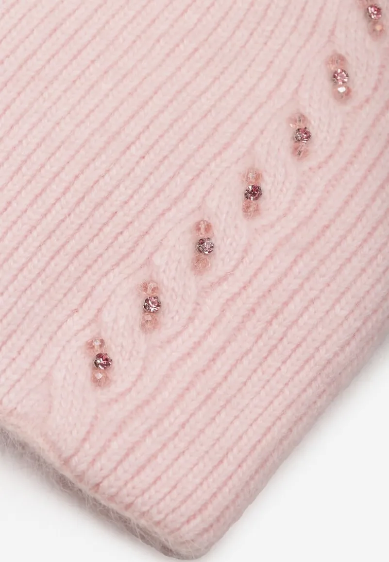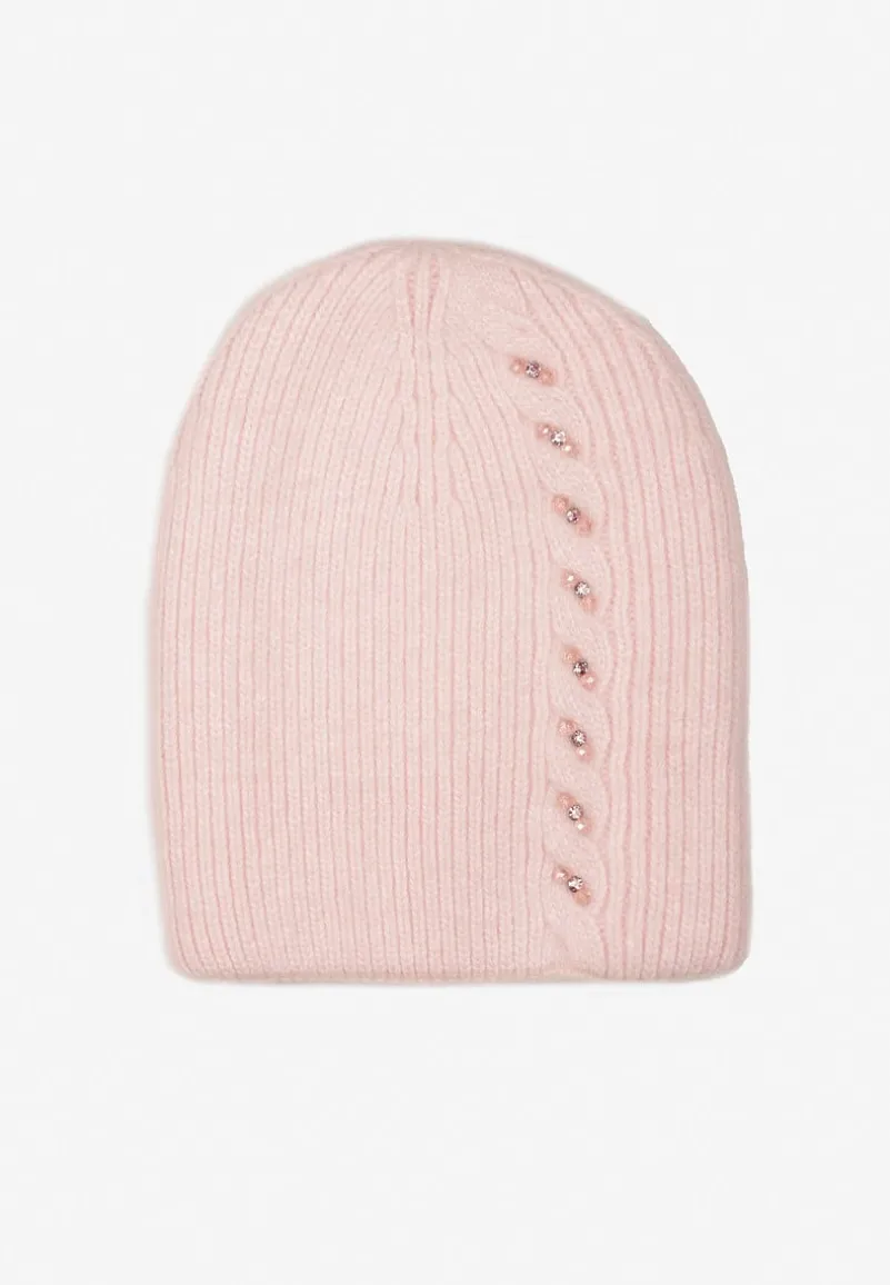 Czapka beanie Violantta z kryształkami i ozdobnym splotem. Idealna na chłodniejsze dni.