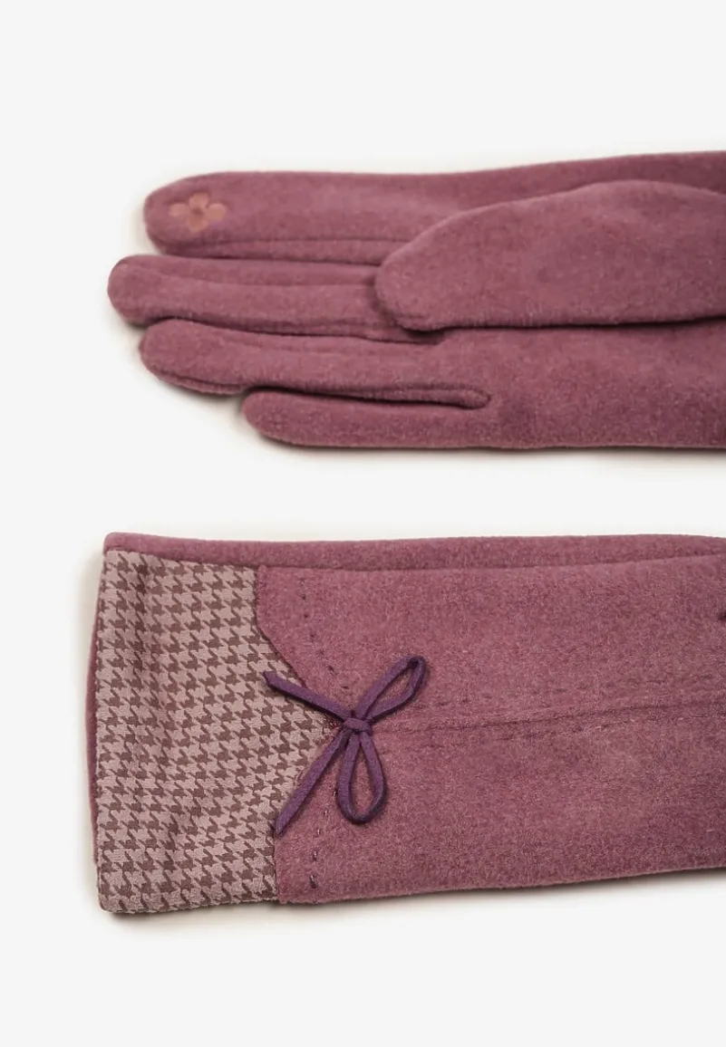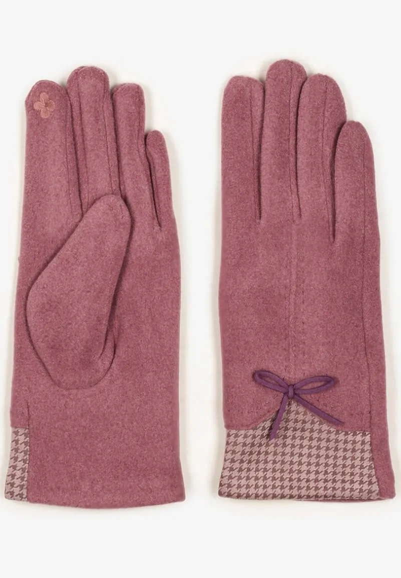 Jasnoróżowe Rękawiczki z Bawełną Cyrkoniami i Kokardką Adelirra
