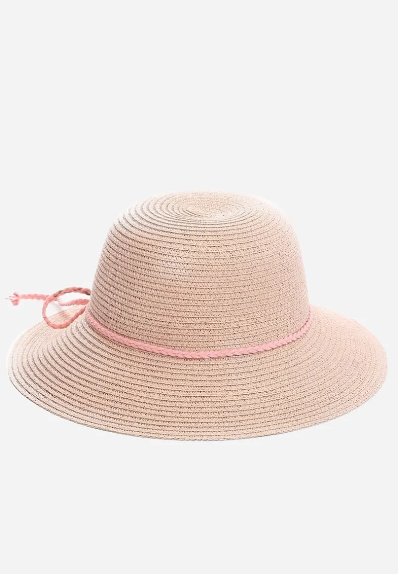 Kapelusz Shoal z szerokim rondem, słomkowy. Wokół ronda dekoracyjny pasek.