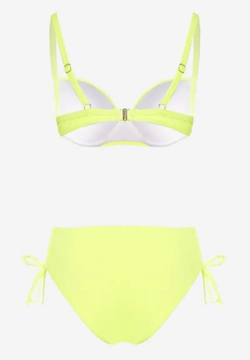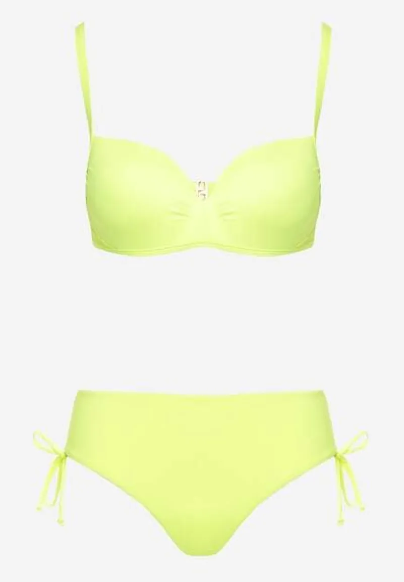 Jasnozielone Bikini Biustonosz z Usztywnianymi Miseczkami Majtki Figi Ozdobione Troczkami Tamarie