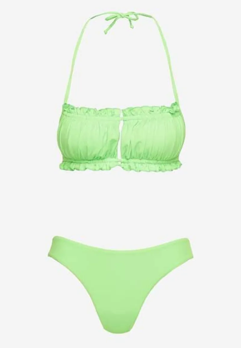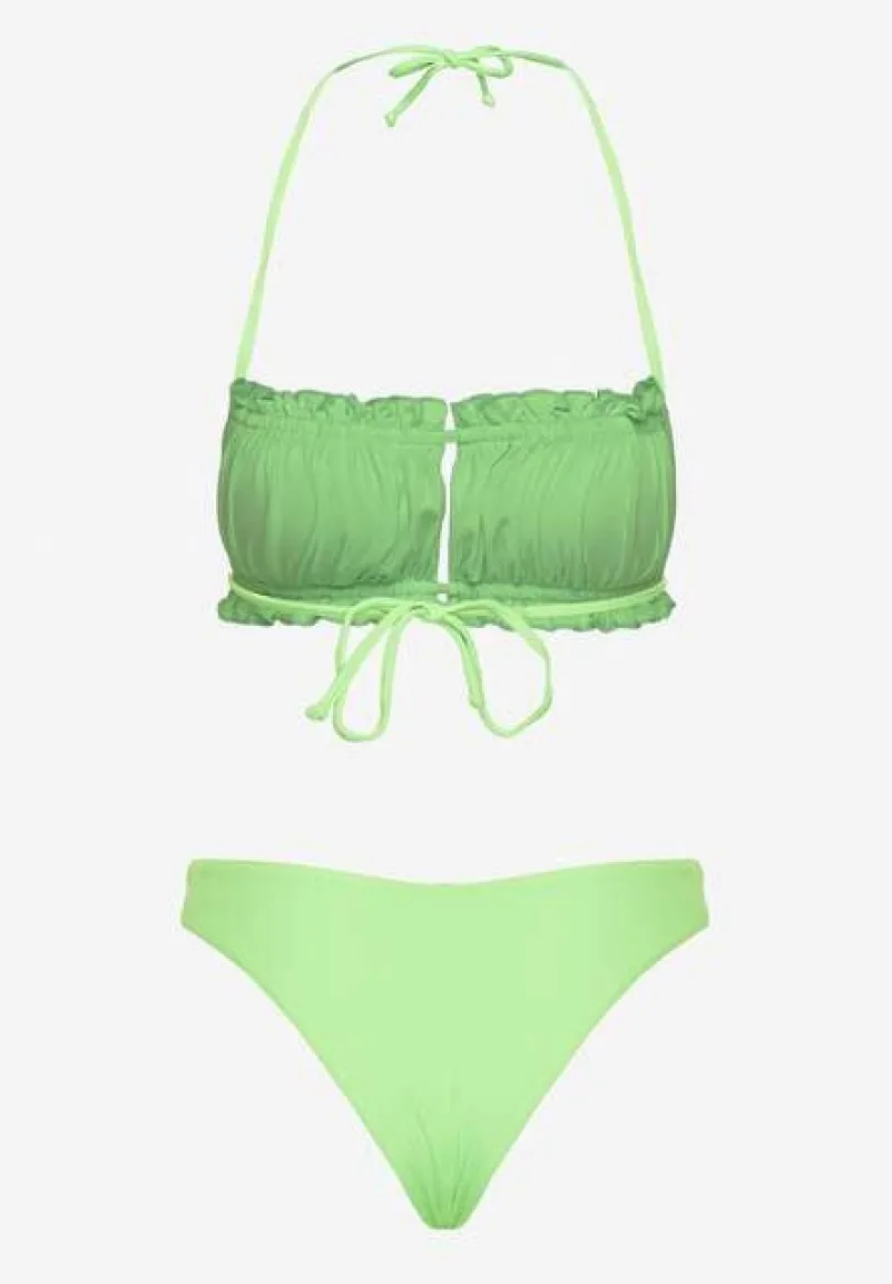 Jasnozielone Bikini Majtki Figi Biustonosz z Wiązaniem Ozdobiony Marszczeniem Folinira