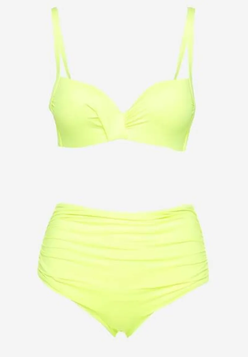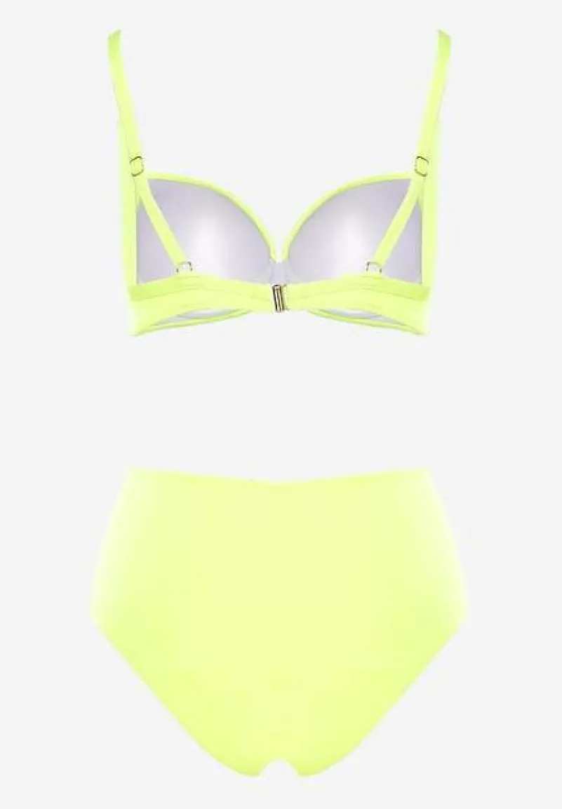Jasnozielone Bikini Usztywniany Biustonosz na Regulowanych Ramiączkach i Majtki z Wysokim Stanem Olamarie