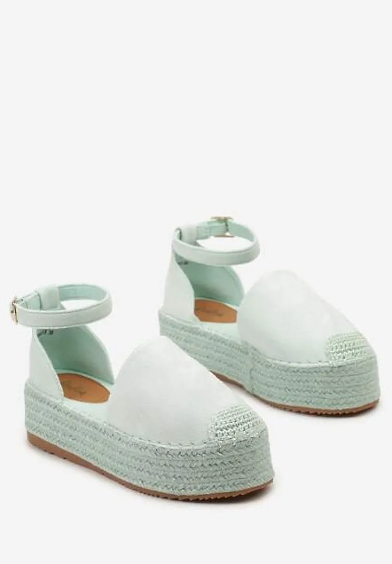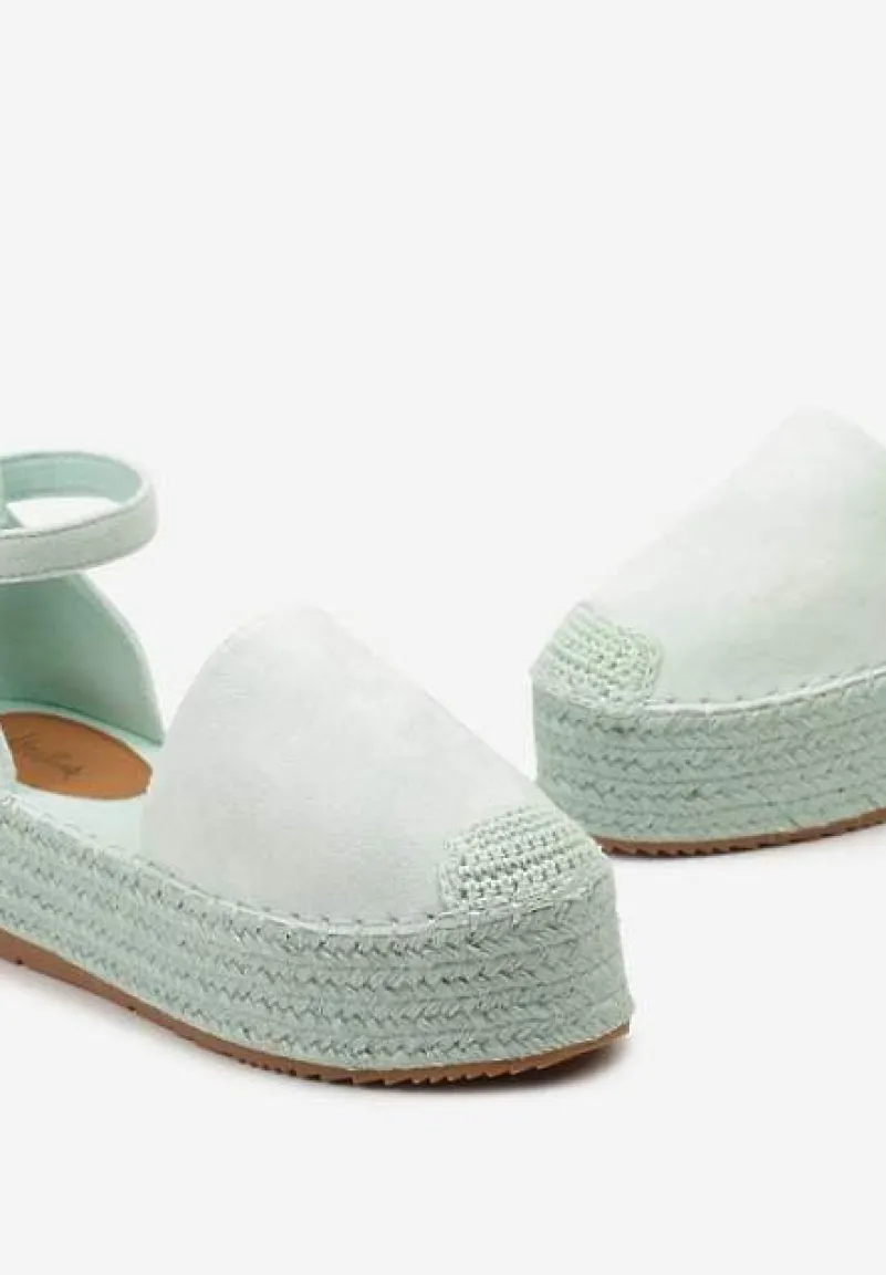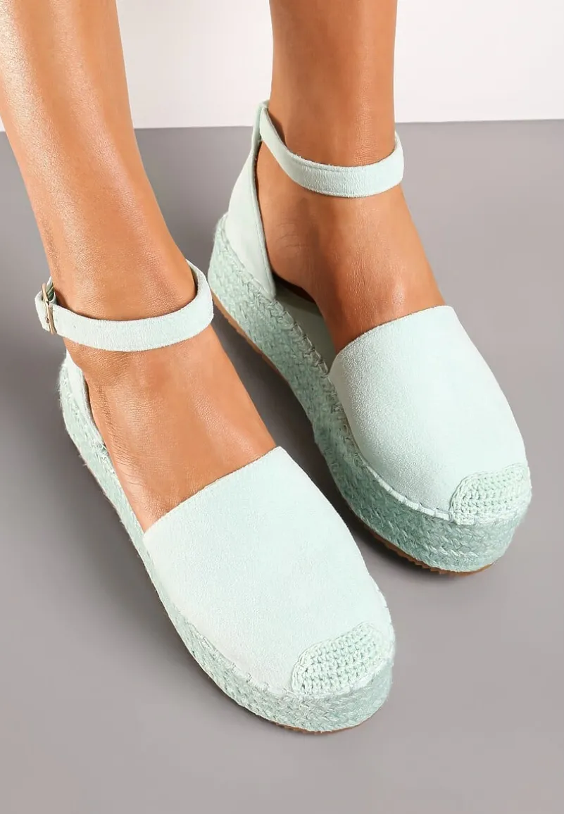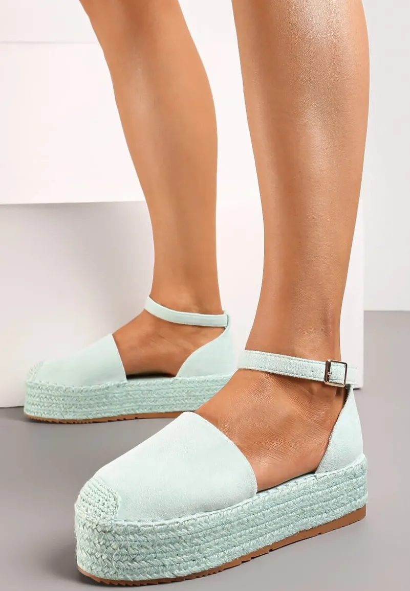 Espadryle Omizza osadzone na plecionej platformie, z ozdobnym noskiem i sprzączką. Wykonane z imitacji zamszu. To subtelny i kobiecy dodatek, który doda uroku Twoim stylizacjom!